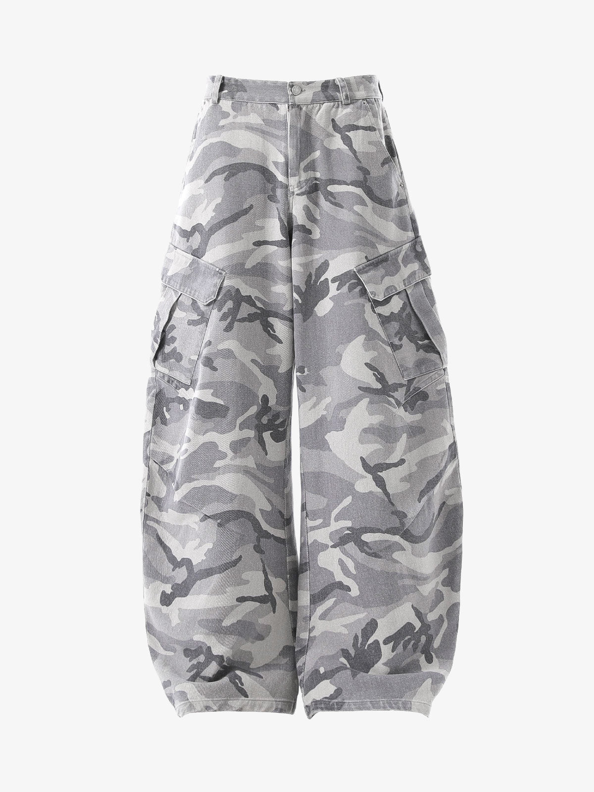 Snow Camouflage Machete Wide-Leg Cargo Barrel Pants - 2548$76.42 USD -