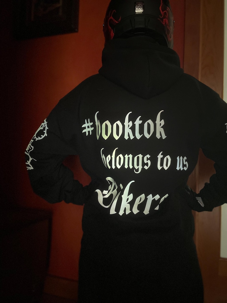 Booktok Biker Hoodie, Reflective Design, Crafted in USA$8.99 USD -