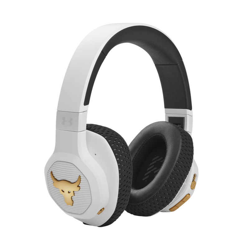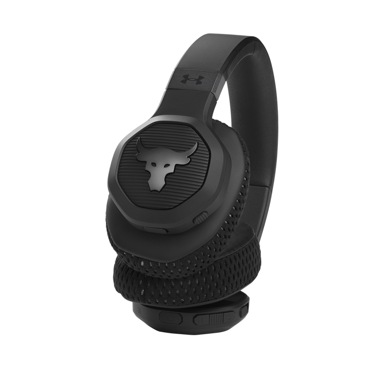 UA Project Rock Over-Ear Training Headphones are tested and approved by Dwayne Johnson himself, built to help you grind harder—with Adaptive Noise Cancelling for ultimate focus, and a durable sweatproof construction. Washable Supervent ear cushions stay dry, and UA Storm Super Grip provides maximum stability. JBL Charged Sound is tuned to maximize motivation, and Bionic Hearing features TalkThru Technology for talking to training partners, and Ambient Aware Technology to hear surroundings. Give voice assistants quick commands and customize your sound with the JBL app. With up to 45-hours of playtime and a hardshell case there's nothing that will hold you back.