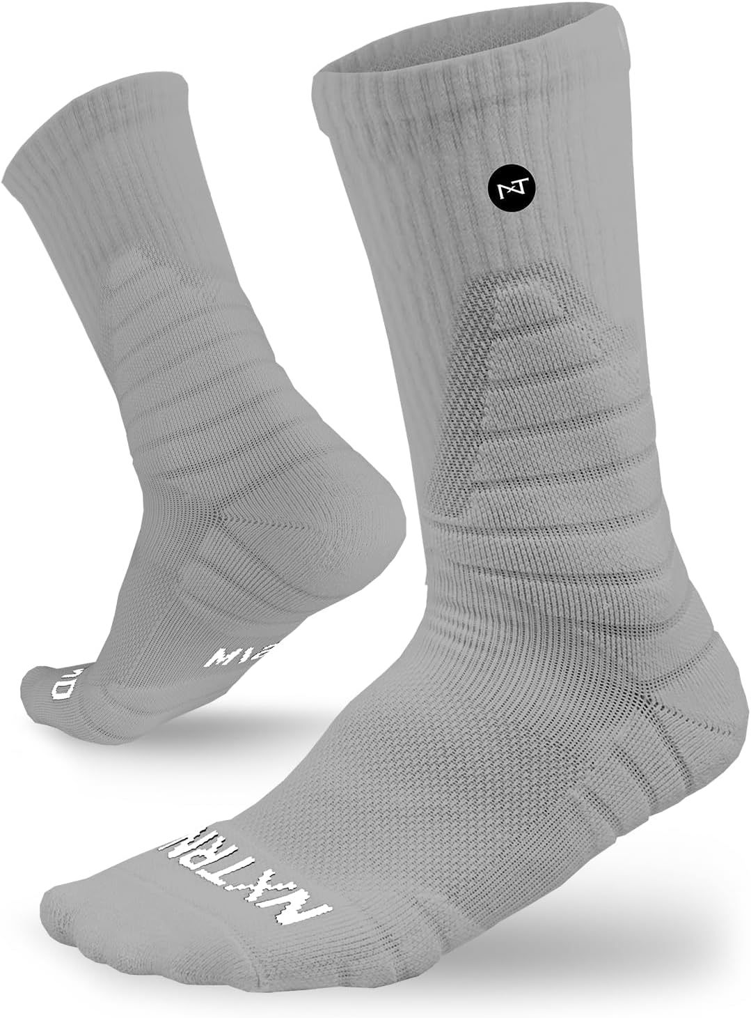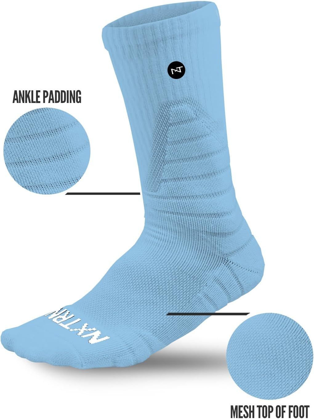 3 Pairs Nxtrnd Crew Socks for Men & Boys, Padded Basketball & Football Socks