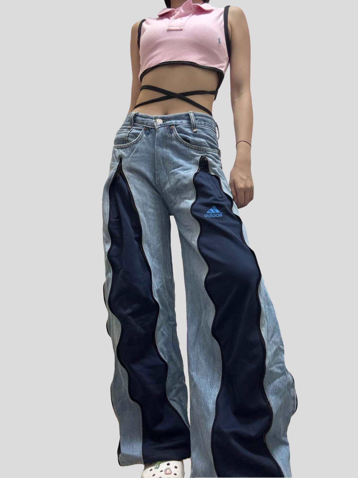 🔹Length: 39”Remade from sport brands sweatpants and Levi’s jeans👖