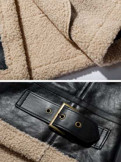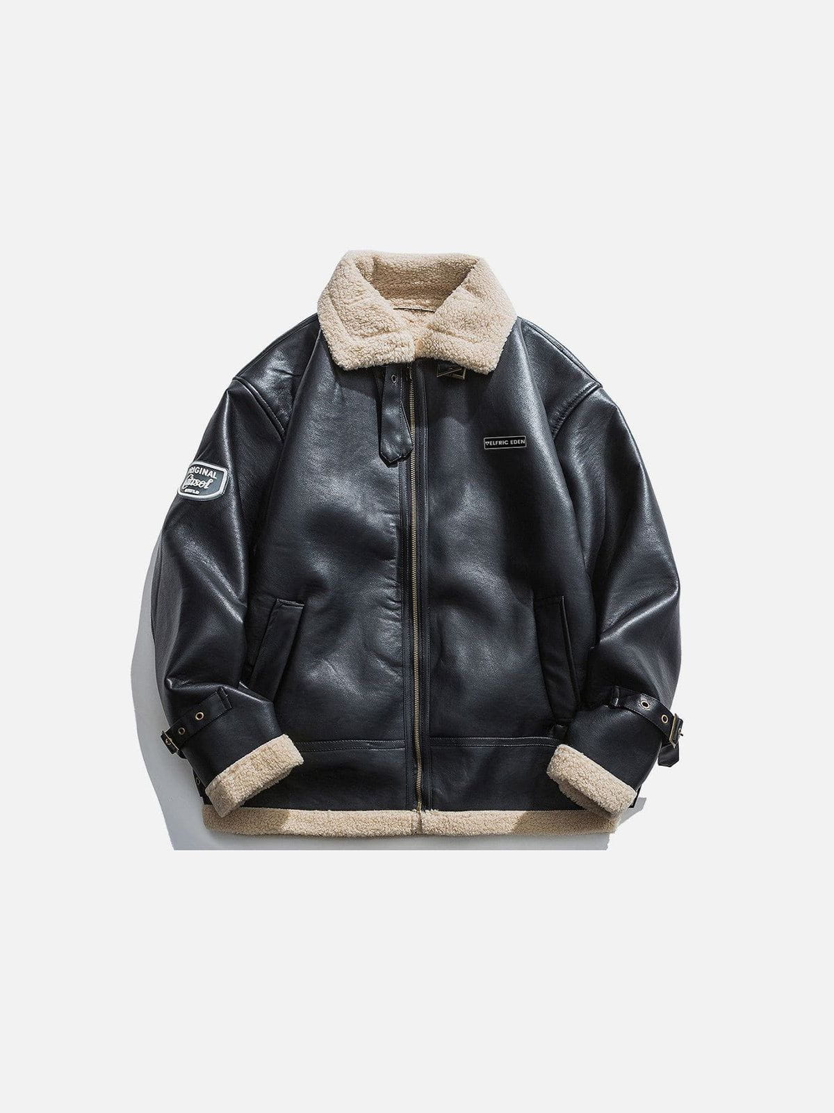 Zipper Lapel PU Borg Jacket