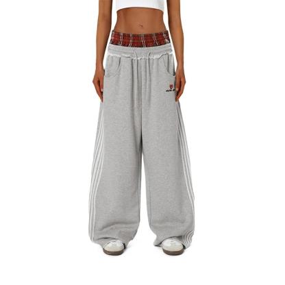 AELFRIC EDEN Women's Cotton Double Waist Grunge Plaid Sweatpants with Patchwork Wide Leg Baggy Pants for Streetwear & Lounge Wear 2025 Trendy Bottoms