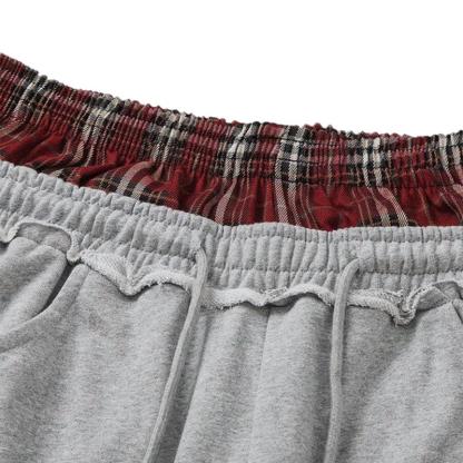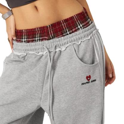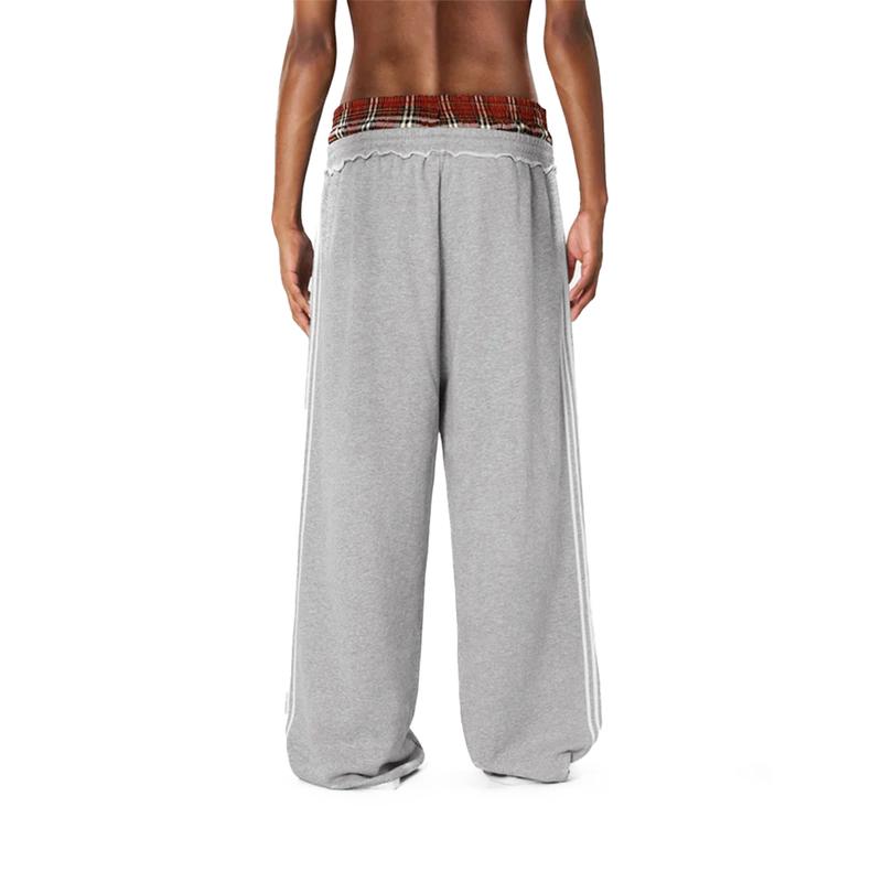 ·Unique Double Waistband Design: Elevate your street style with these baggy sweatpants featuring a trendy double waistband that adds both function and flair to your everyday look·Plaid Patchwork Detail: The bold plaid patchwork brings a retro vibe to your outfit, perfect for casual days out or stylish lounging at home·Ultimate Comfort & Versatility: Made for all-day wear, the loose fit and wide-leg design offer unrestricted movement. Perfect for a casual day of errands, hanging out with friends, or lounging in style·Leg-Lengthening Silhouette: These long pants are designed to elongate your legs, giving you a sleek look while staying comfortable. Ideal for pairing with your favorite sneakers or boots for an urban-chic ensemble·Easy Care with Attention to Detail: To maintain the plaid patchwork and delicate design, wash gently by hand or use a delicate cycle