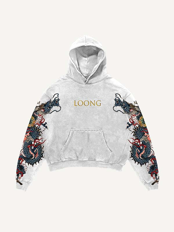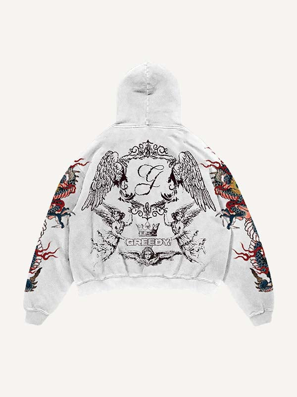 Angel&Graphic&Letter&Dragon Faux Decal Print Slant Pockets Hoodie