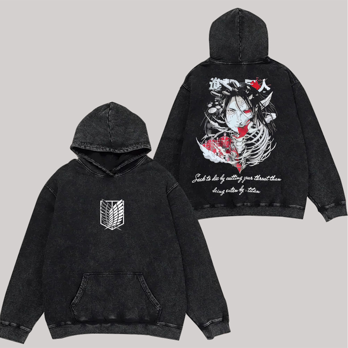 Attack on Titan Printed Unisex Washed Hoodie