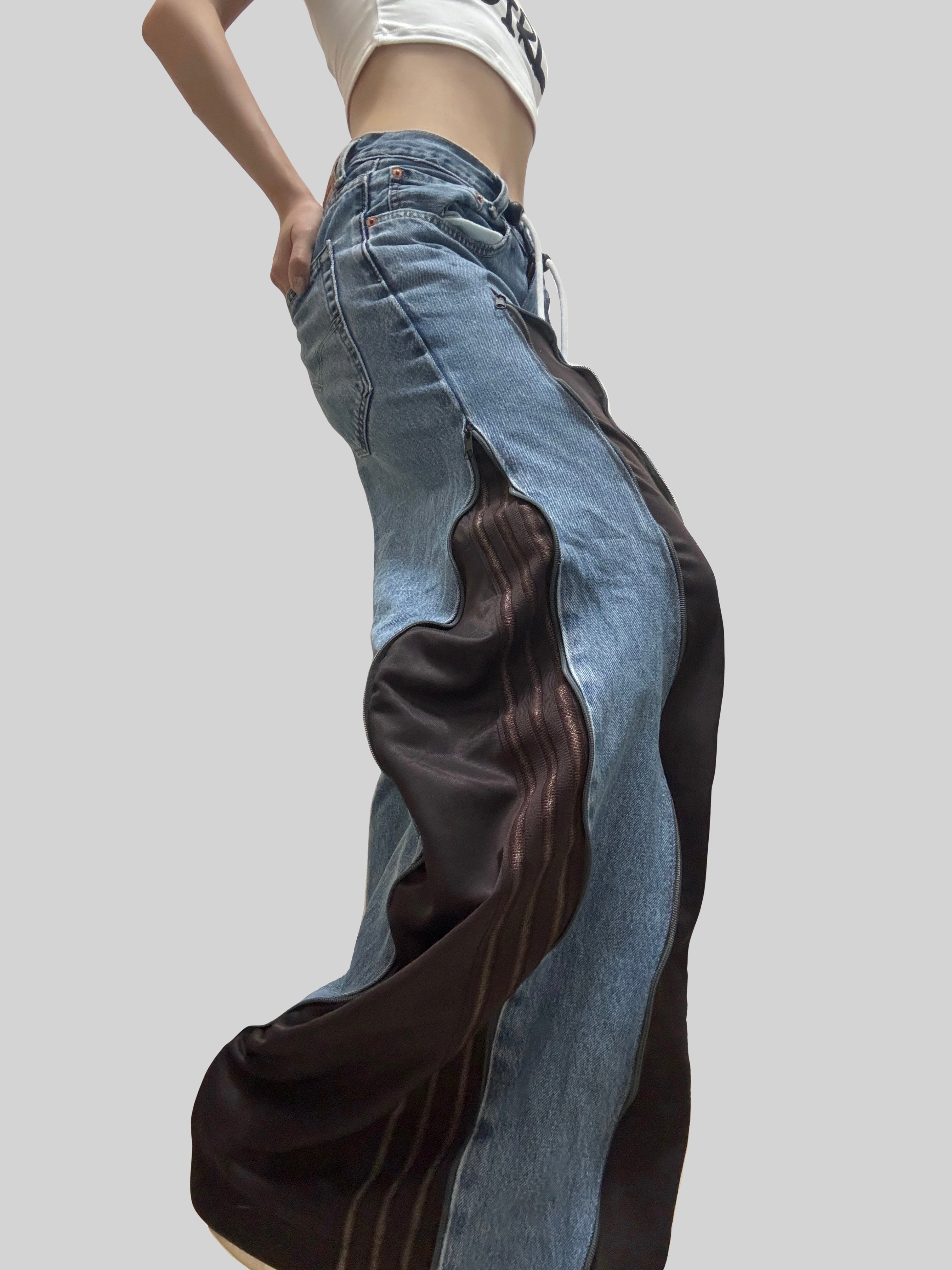 🔹Length: 39”Remade from sport brands sweatpants and Levi’s jeans👖