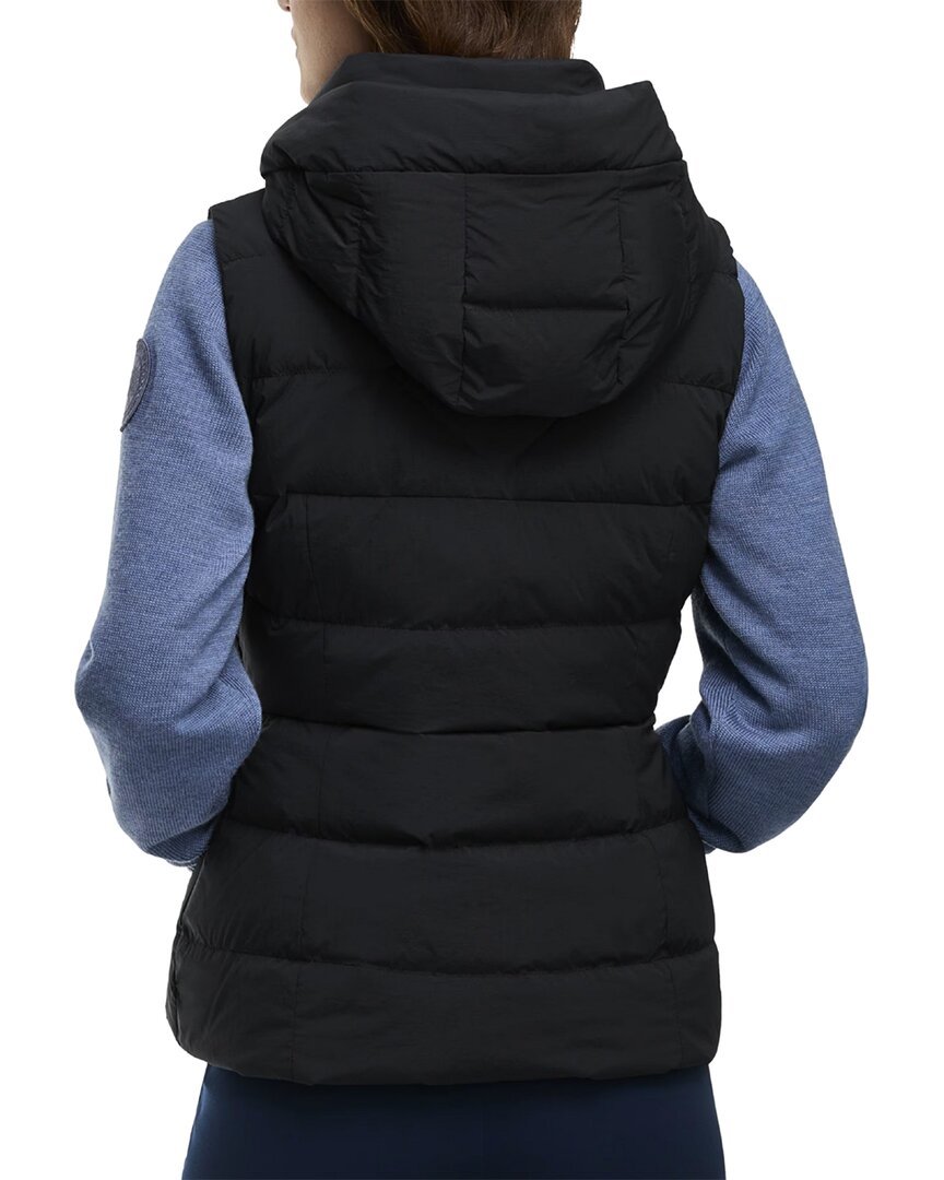 Introducing the Canada Goose Clair Vest, a must-have addition to your outerwear collection. This black quilted vest features a removable hood, patch logo at the chest, and two front zippered pockets for added convenience. With a zipper front closure and lightweight design, this vest is perfect for layering in cooler weather.Crafted from high-quality materials, the Clair Vest is made with a shell and lining of 87% polyamide and 13% elastane, while the fill consists of 90% duck down and 10% feather for superior warmth and insulation. Machine washable and made in Canada, this vest is as practical as it is stylish.Model is 5'9' and is wearing a size small. Please note that measurements may vary slightly by size. When you purchase from us, you can trust that our products are 100% genuine. While we may source items from trusted independent suppliers, we always guarantee the authenticity of every product sold on our site. Embrace adventure with Canada Goose and the Clair Vest today.