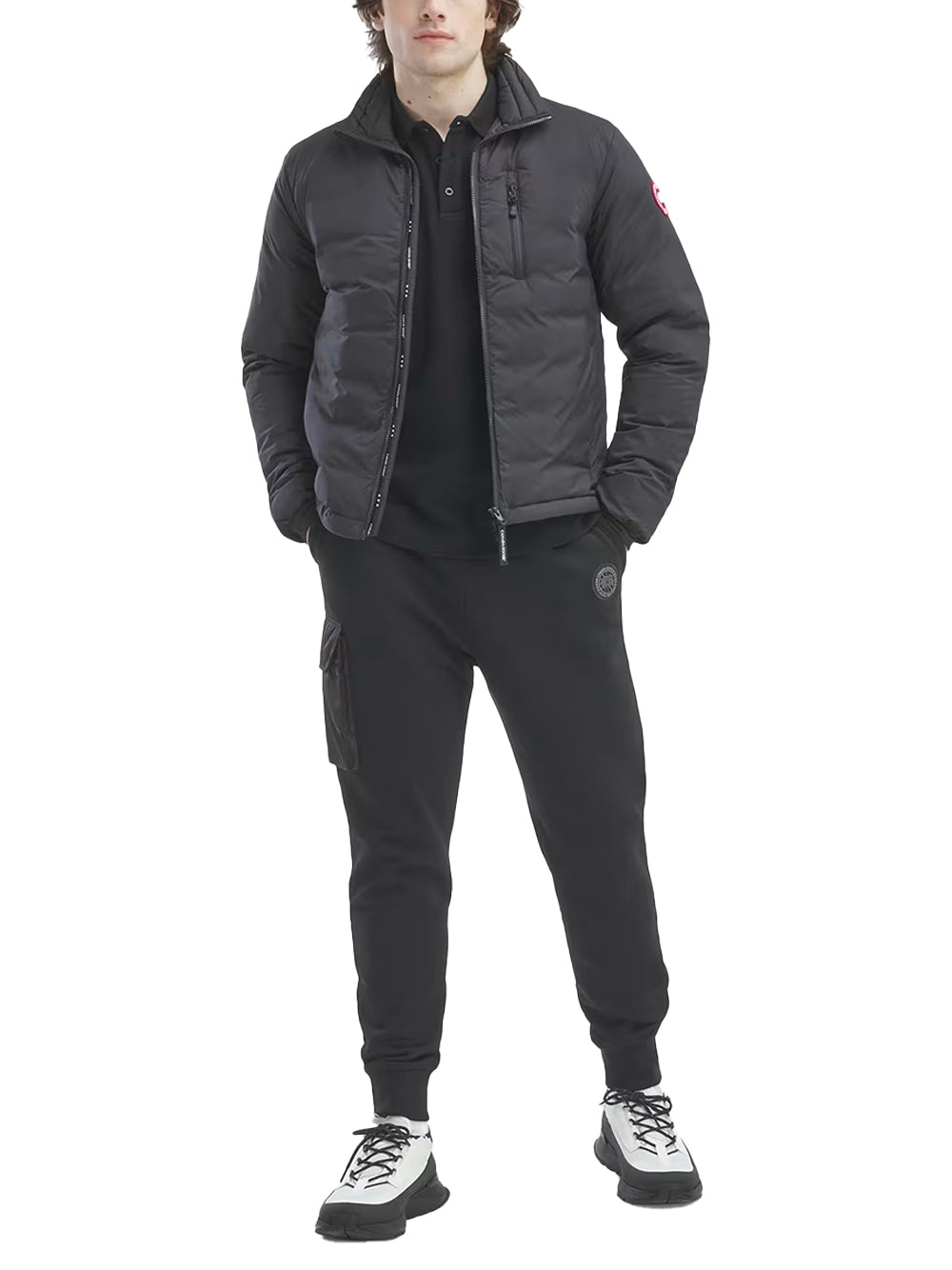 Canada Goose Lodge Jacket Black is an ultra-light , , that packs into its internal zip pocket and features a down collar with knitted chin guard. With drawcords, Power Stretch® cuffs, two-way zip and multiple zip pockets, this is a practical for UK weather.