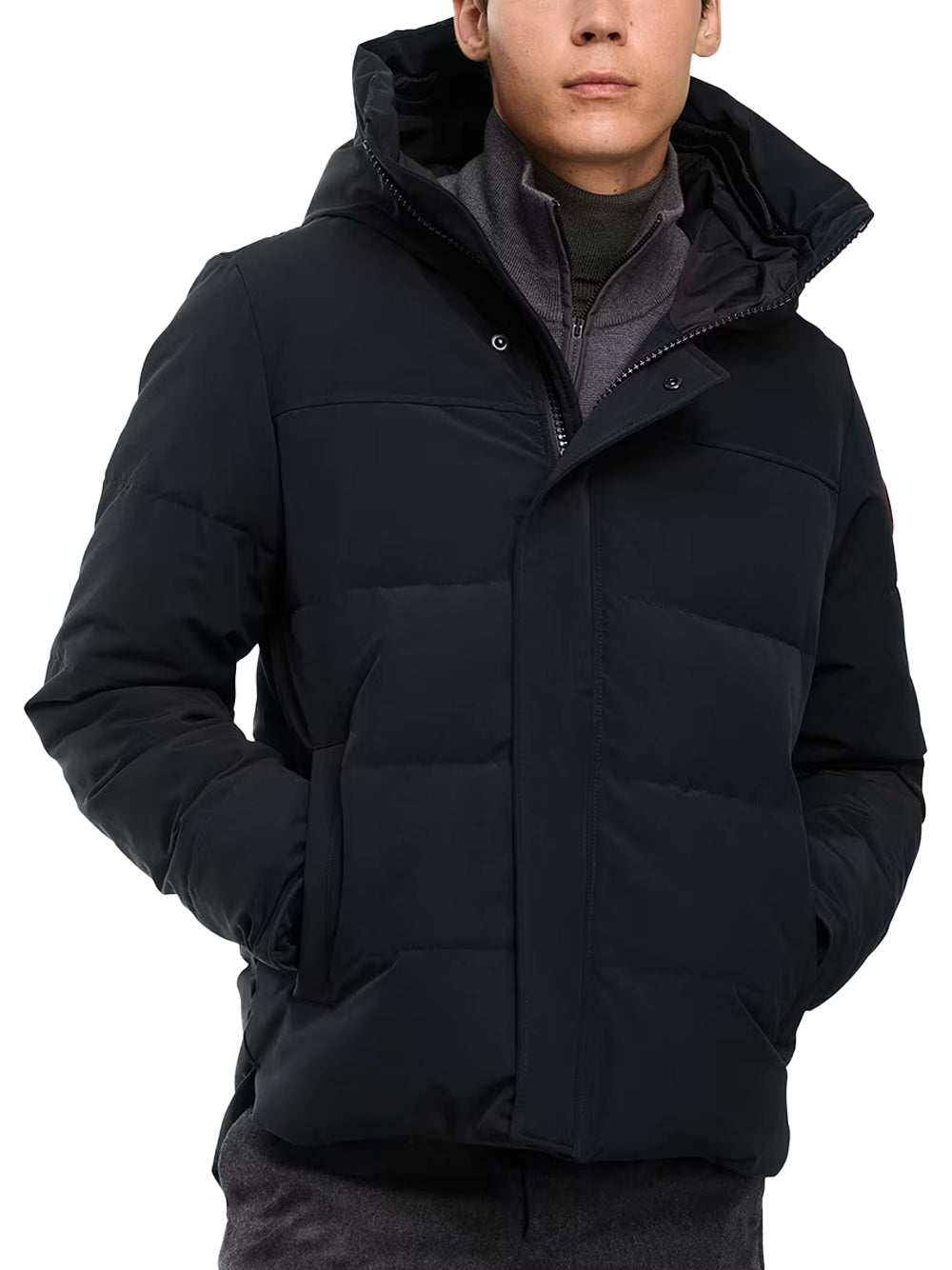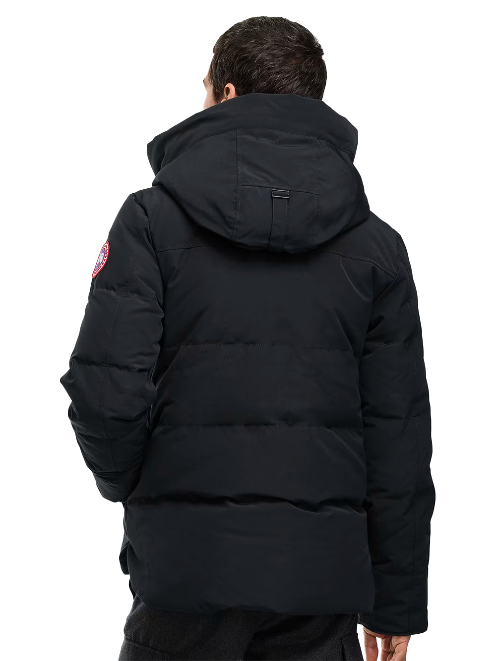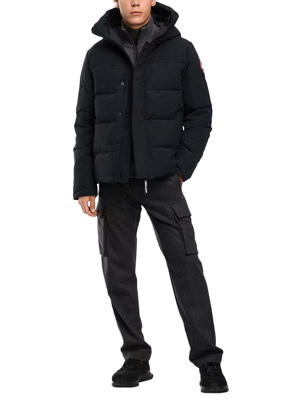 The Canada Goose MacMillan Parka Black is a premium designed for urban living. Featuring an adjustable down-filled snorkel hood with a removable zipper guard, this offers customizable protection. The placket with snap closures over a two-way zipper, storm flap underneath, and recessed rib-knit cuffs ensure warmth and wind resistance. Reinforced CORDURA® fabric on the cuffs enhances durability in high-abrasion areas. The hip-length design with a longer back provides added coverage. Equipped with two fleece-lined exterior pockets with zipper closures and three interior pockets, including a security pocket and two mesh drop-in pockets, this offers ample storage. Backpack straps allow for hands-free carrying. Ideal for those seeking a versatile for both style and function.