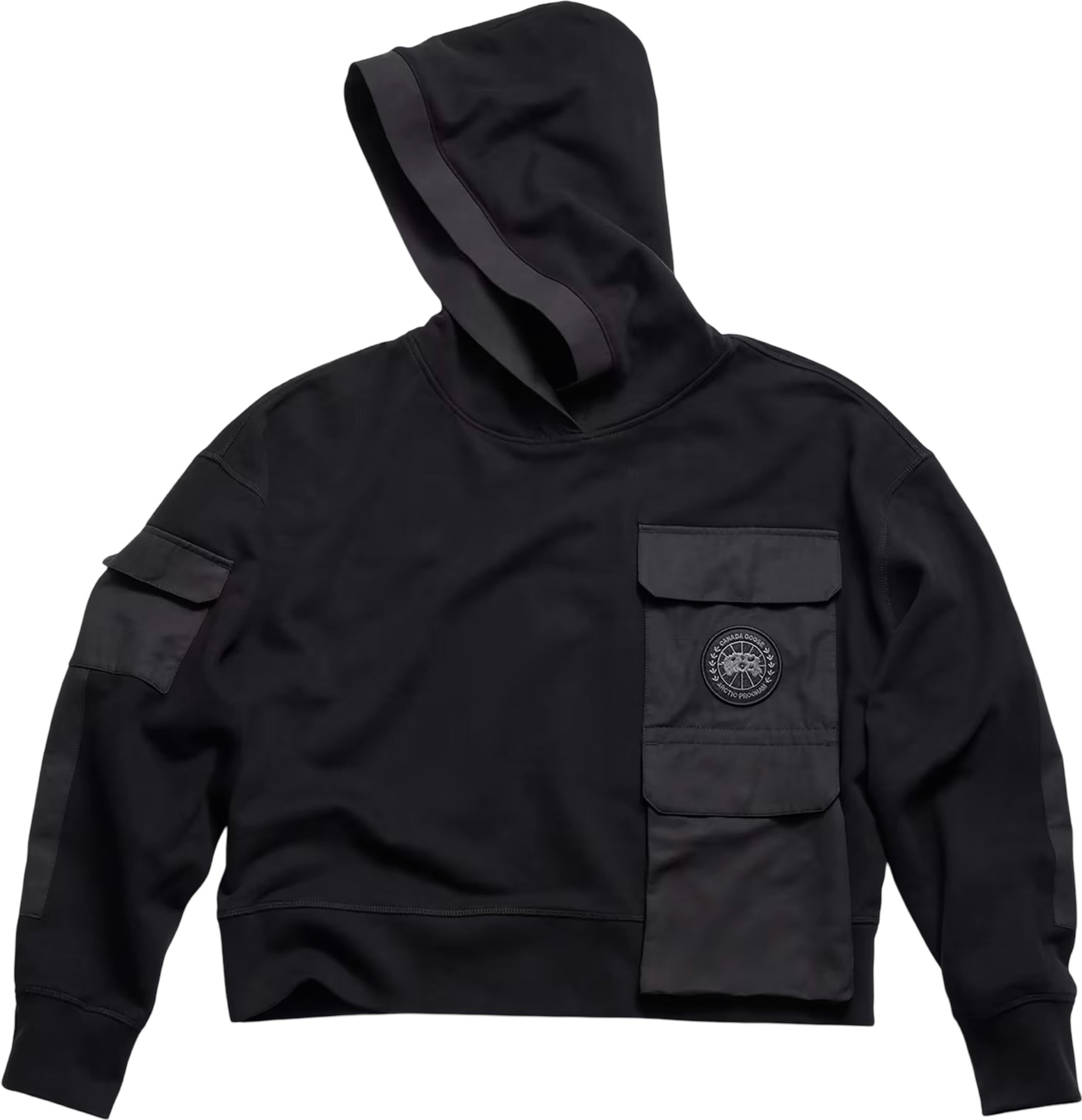 The Yates Hoody takes design cues from our Expedition Parka pocket styling. This soft, comfy and breathable layering piece is finished with functional patch pockets, durable elbow patches and a face-framing hood. It falls at high-hip length and doubles as outerwear during transitional weather with its relaxed silhouette and mixed media elements. This all-season hoody is infused with design elements that define Canada Goose