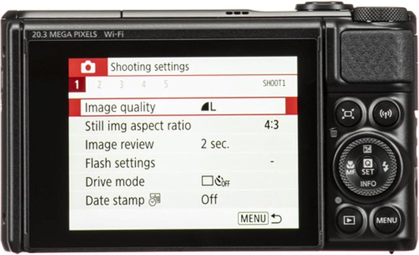 - The 20.3MP sensor is also capable of 4K video and 4K time-lapse recording. Framing for videos and photos can be done via the 3.0" LCD screen on the rear of the device, which can tilt 180° for selfies. Built-in Wi-Fi and Bluetooth allow the camera to connect to compatible mobile devices with the Canon Camera Connect app installed and enables quick editing and sharing of photos.