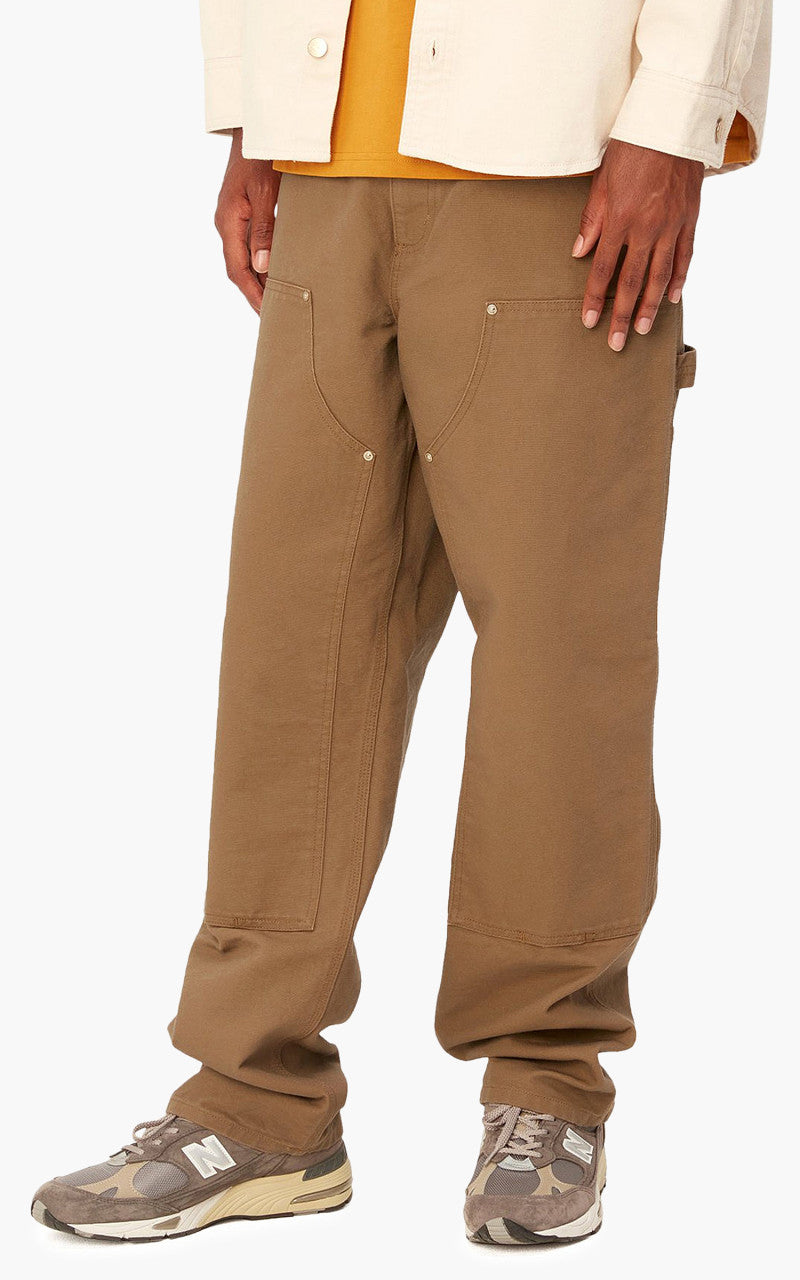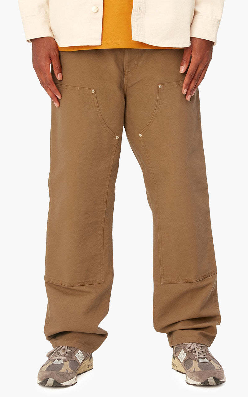 The Double Knee Pant takes inspiration from the classic work pant, with a relaxed, straight leg and a double layer knee. It is constructed in Carhartts iconic 12oz Dearborn Canvas – now made from organic cotton, but just as robust as previous iterations. Triple stitch detailing provides durability. Finished with a woven Carhartt WIP logo on the rear. Relaxed straight fit.