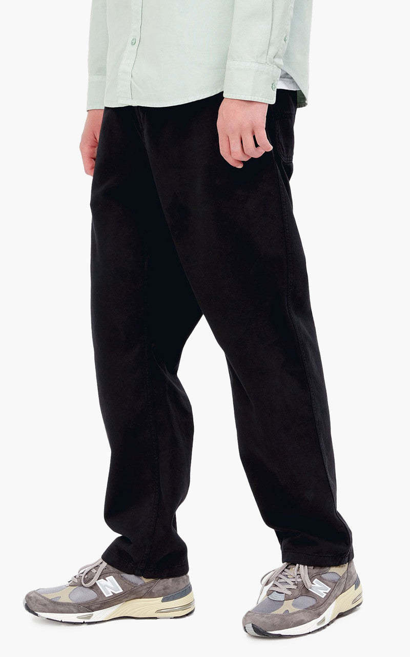 The Flint Pant is made of durable Moraga twill, which is a midweight organic cotton fabric that has been garment-dyed, resulting in subtle color variations throughout and a softer feel. The style is cut in a regular tapered fit with an elasticated waistband, and features an inseam insert for added comfort. Tool pockets and a hammer loop further add to the style's utilitarian influences.
