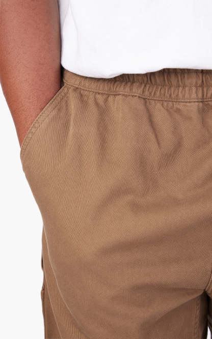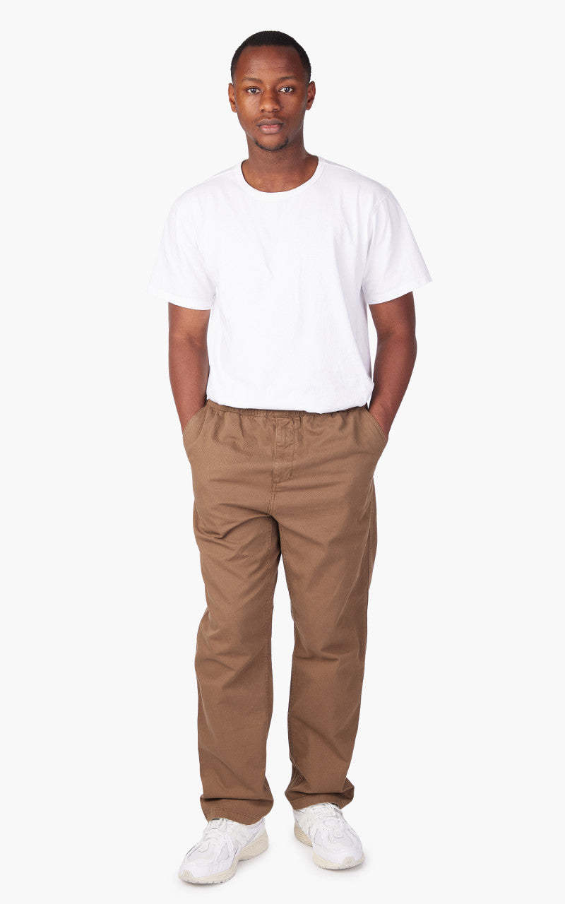 The Flint Pant is made of durable Moraga twill, which is a midweight organic cotton fabric that has been garment-dyed, resulting in subtle color variations throughout and a softer feel. The style is cut in a regular tapered fit with an elasticated waistband, and features an inseam insert for added comfort. Tool pockets and a hammer loop further add to the style's utilitarian influences.