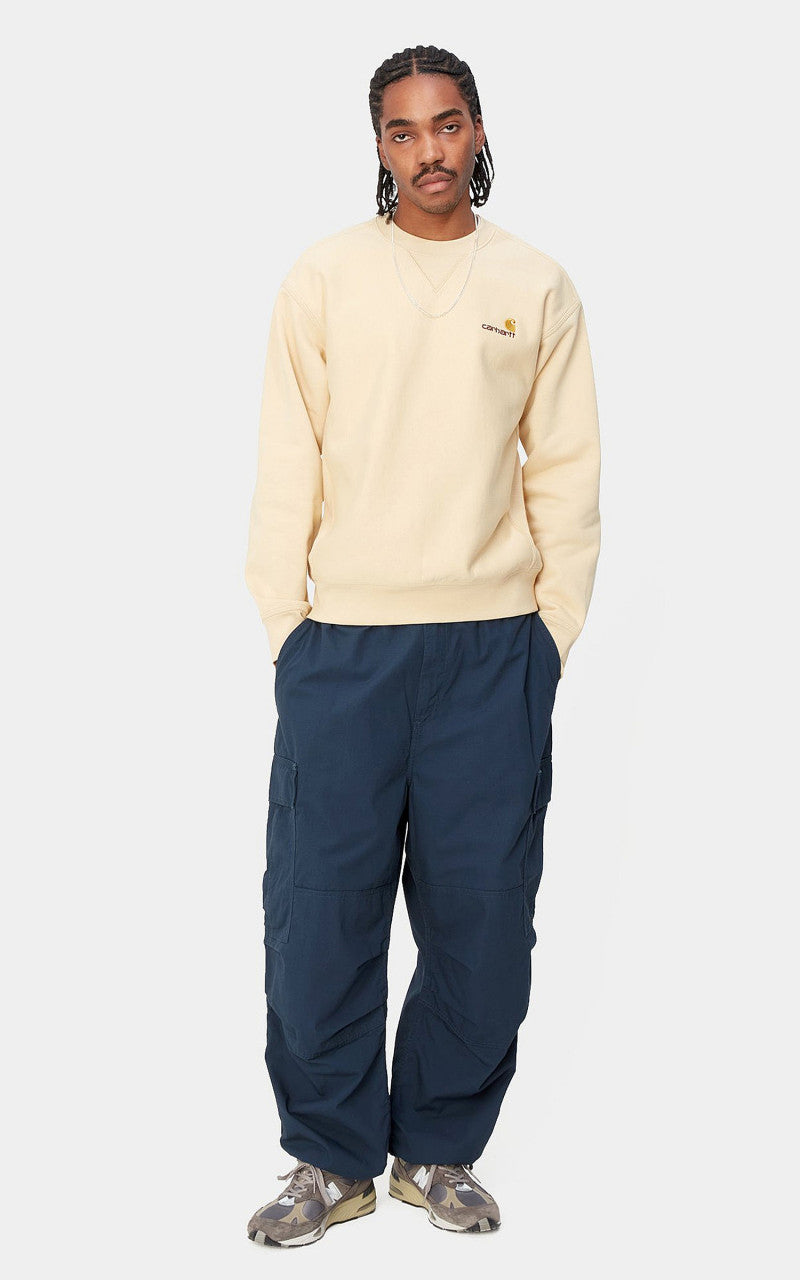 The Jet Cargo Pant is made from cotton ripstop fabric. The military-inspired style has an extra loose fit with a regular waist. Double-layer pleated knees offer added volume. The item also has an elasticated waistband and leg openings for an adaptable fit. It is detailed with two side pockets, two rear pockets, and a cargo pocket on each leg. A woven Square Label completes the design.