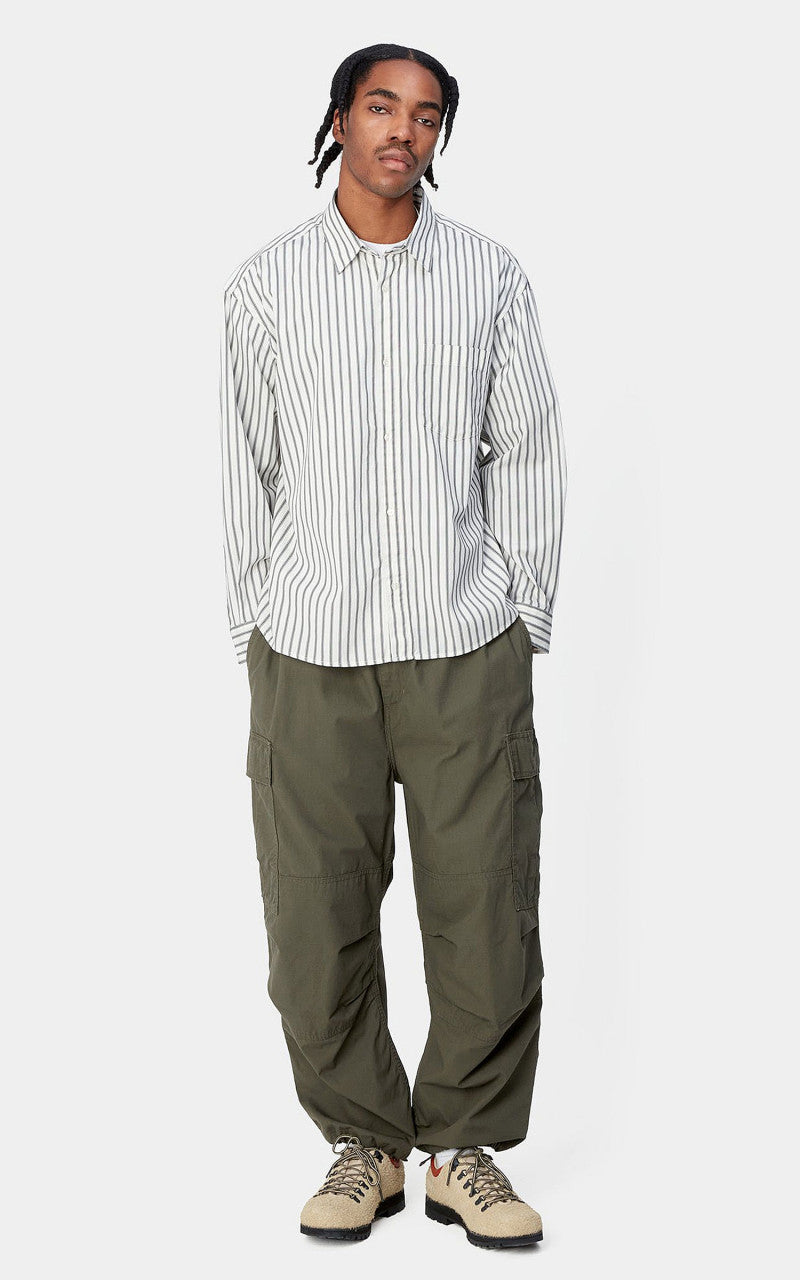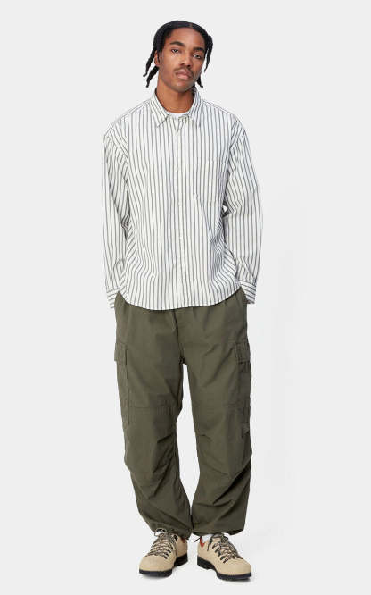 The Jet Cargo Pant is made from cotton ripstop fabric. The military-inspired style has an extra loose fit with a regular waist. Double-layer pleated knees offer added volume. The item also has an elasticated waistband and leg openings for an adaptable fit. It is detailed with two side pockets, two rear pockets, and a cargo pocket on each leg. A woven Square Label completes the design.
