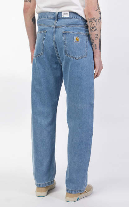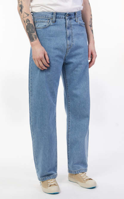 The Landon Pant is constructed from a heavyweight denim that has been stone washed for a worn look. The item features classic five pocket construction, with contrast stitching and a woven Square Label on the right rear pocket. This pant has a roomy upper leg, which tapers below the knee.