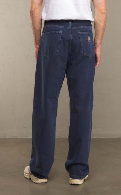 The Landon Pant is a five-pocket style made from heavyweight cotton denim which has been stone-dyed, offering a soft yet saturated wash of color. The item is cut a loose tapered fit with a regular waist. A woven Square Label appears on the back pocket.