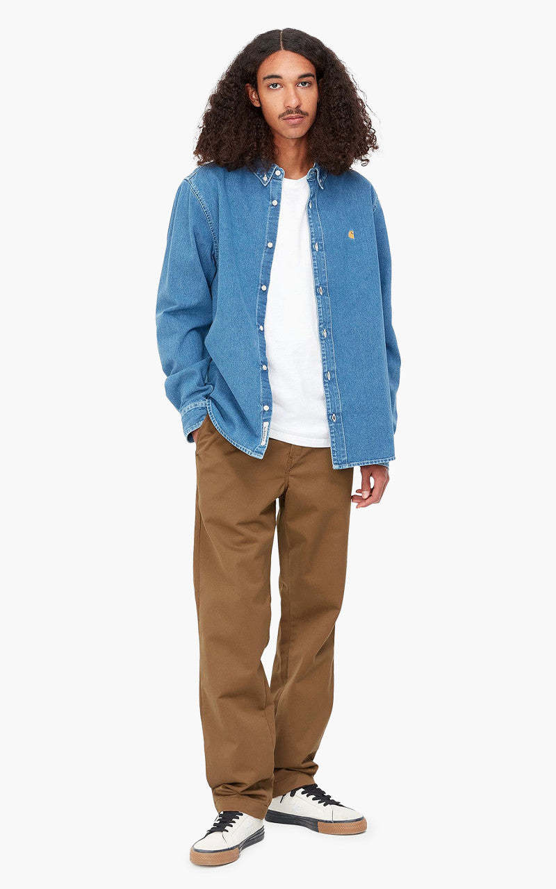 The Master Pant is constructed in the hard-wearing 8.8oz Denison twill, which is a robust and midweight poly-cotton fabric, and has a relaxed cut which tapers below the knee. The style also features two side and back pockets, and a woven Square Label on the rear.