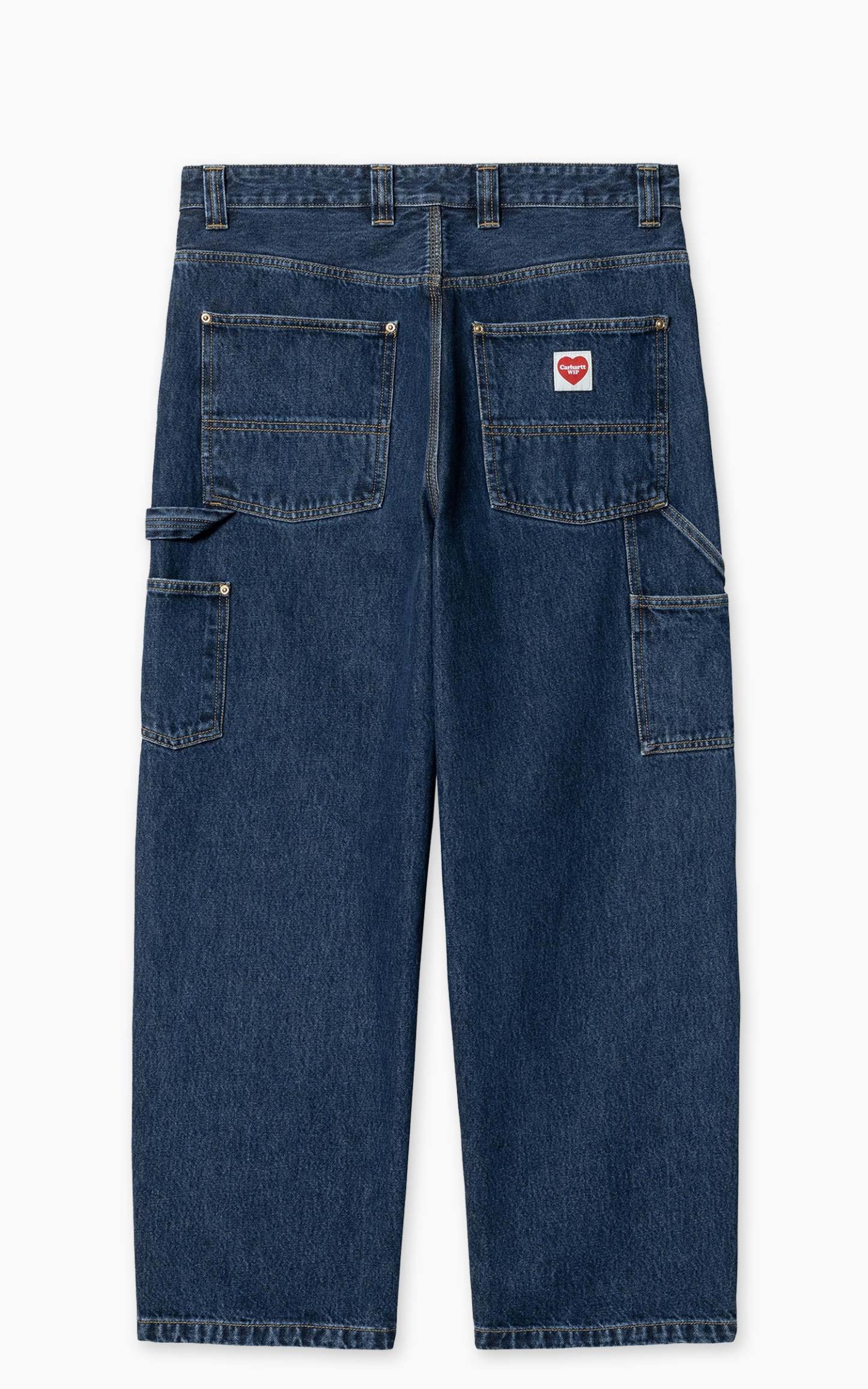 The Nash Double Knee Pant draws inspiration from classic work pant silhouettes and is constructed from robust Smith denim. It is cut in a loose fit with a regular waist. The style comes in a rinsed iteration for a softer feel without compromising on durability, and a stone-washed version for a unique worn-in appearance. Triple-stitched details make the pant more robust, while tool pockets and a hammer loop offer further nods to the item's utilitarian influences. A woven Heart Label on the rear pocket references the brand's heritage.