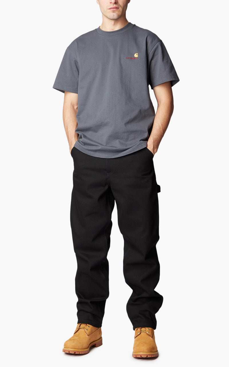 The Single Knee Pant draws inspiration from classic work pant silhouettes, and is constructed in the robust 13.5oz Smith Denim, which will slowly soften with wear over time. This style is a looser version of the Ruck Single Knee Pant, and is cut in a relaxed, straight leg fit, featuring a regular waist. Bartack stitching, tool pockets, and a hammer loop nod to the style's utilitarian influences.