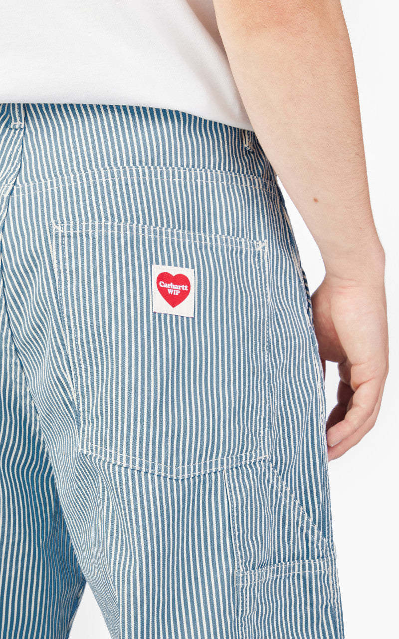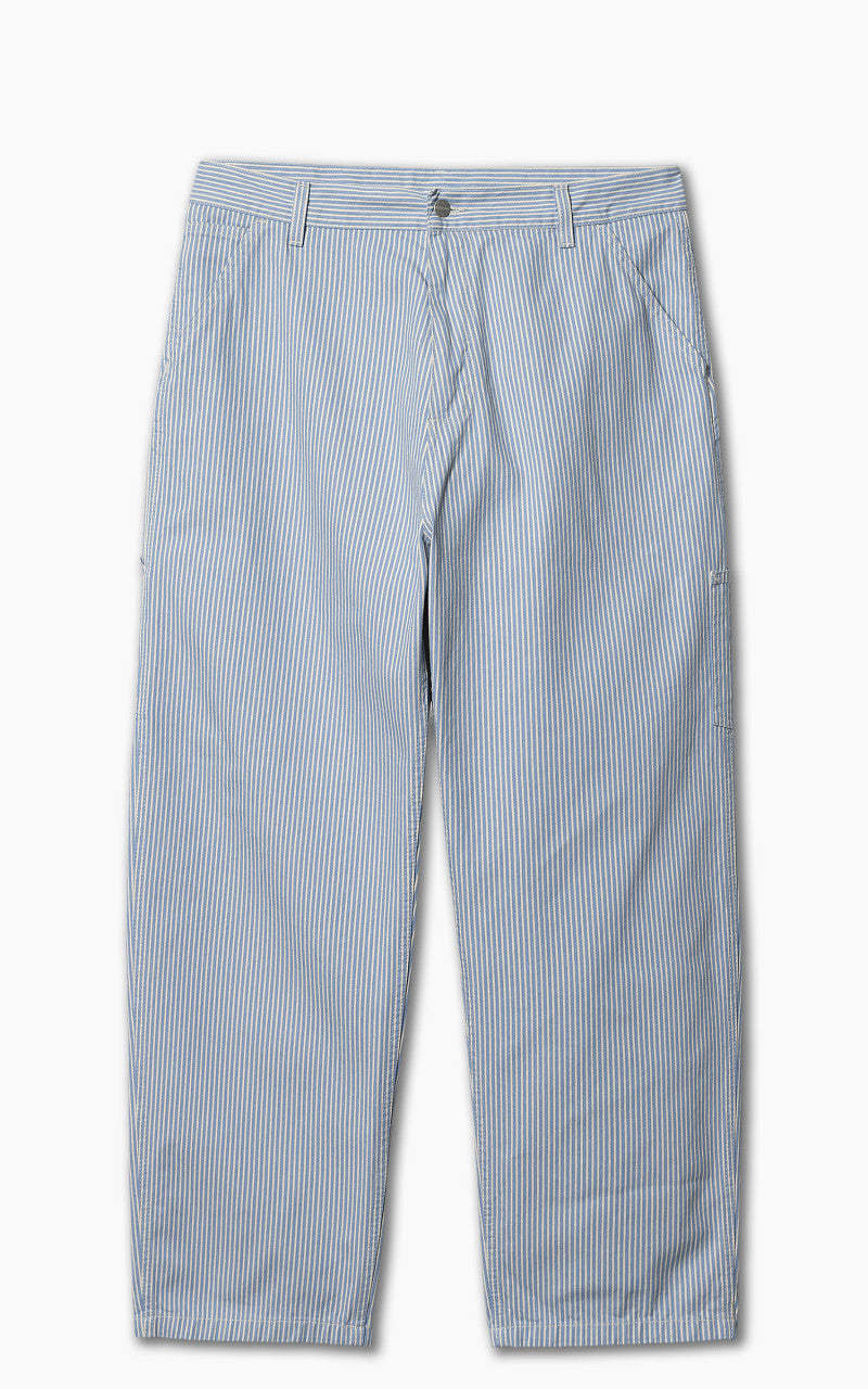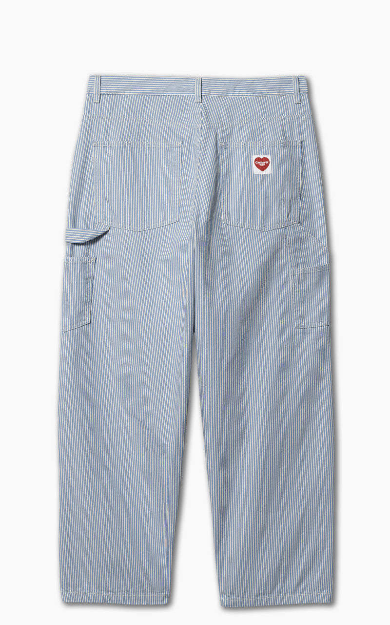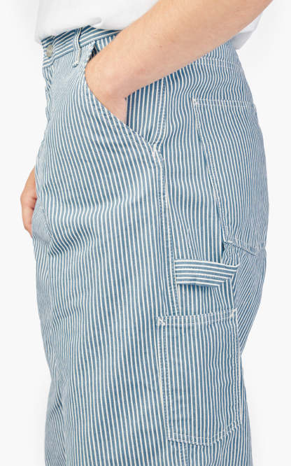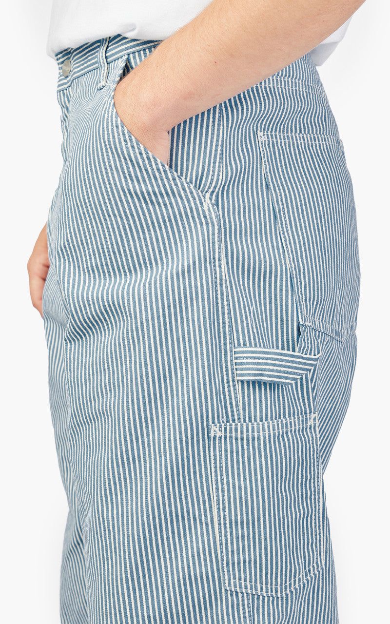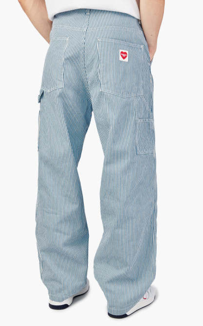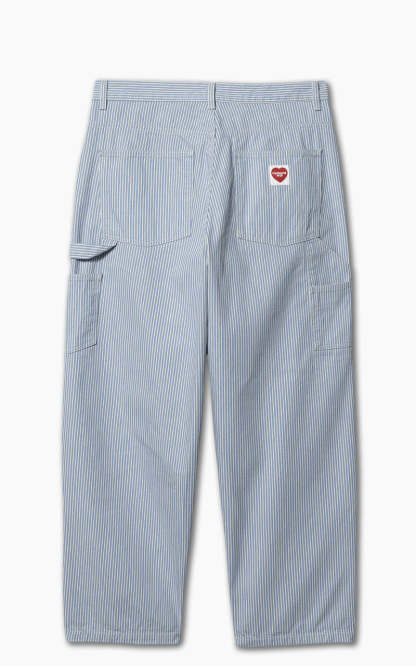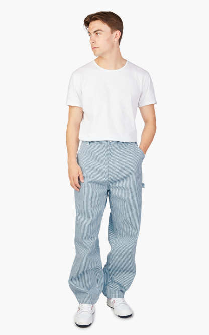 The Terrell Single Knee Pant is made from midweight, hickory striped Terrell fabric. It has a loose fit with a regular waist. The garment is detailed with utilitarian tool pockets and a hammer loop, while a woven Heart Label on the rear pocket nods to the brand's heritage.