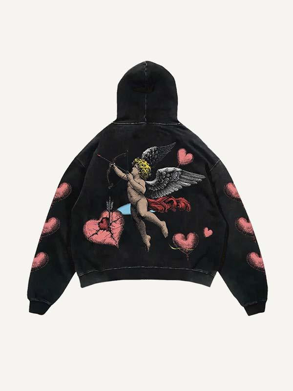 Cupid&Heart Print Slant Pockets Hoodie