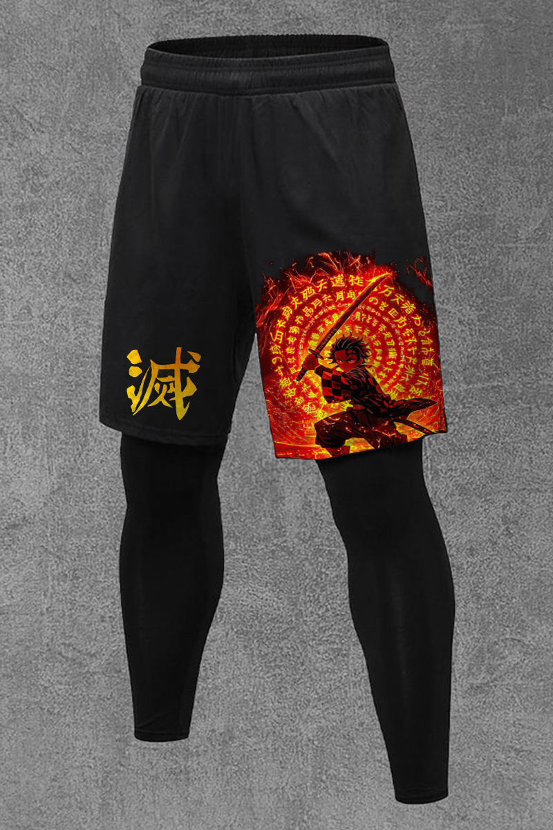 Demon Slayer Anime Printed Men's All-In-One Fitness Leggings