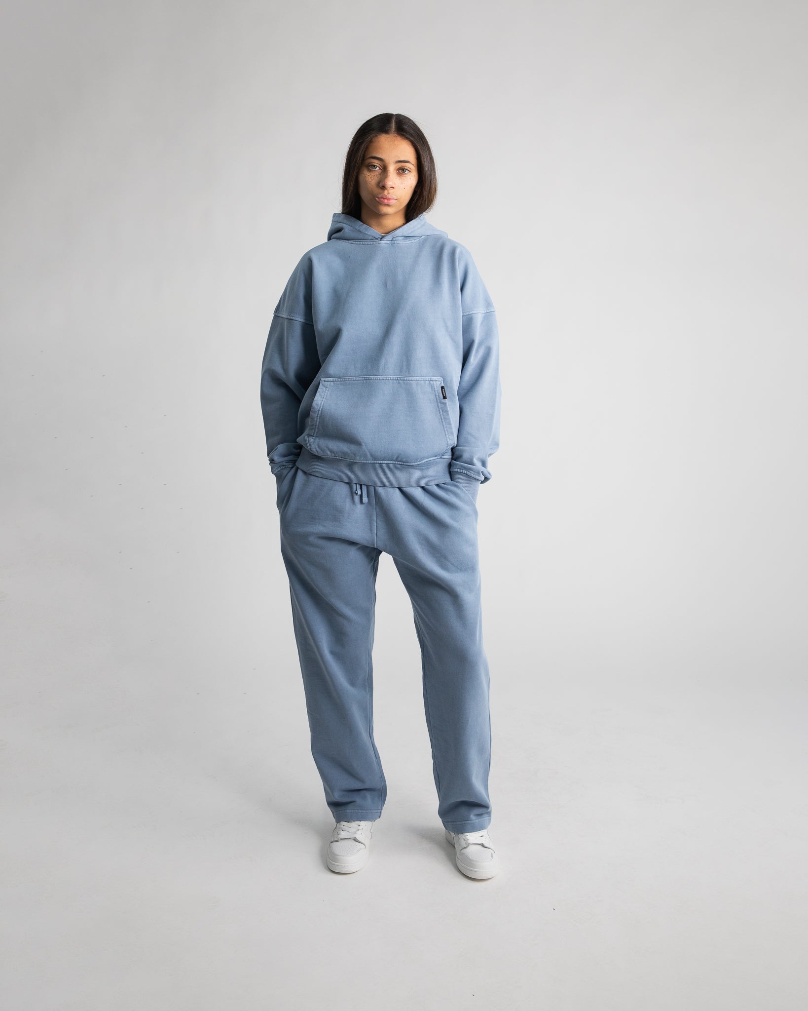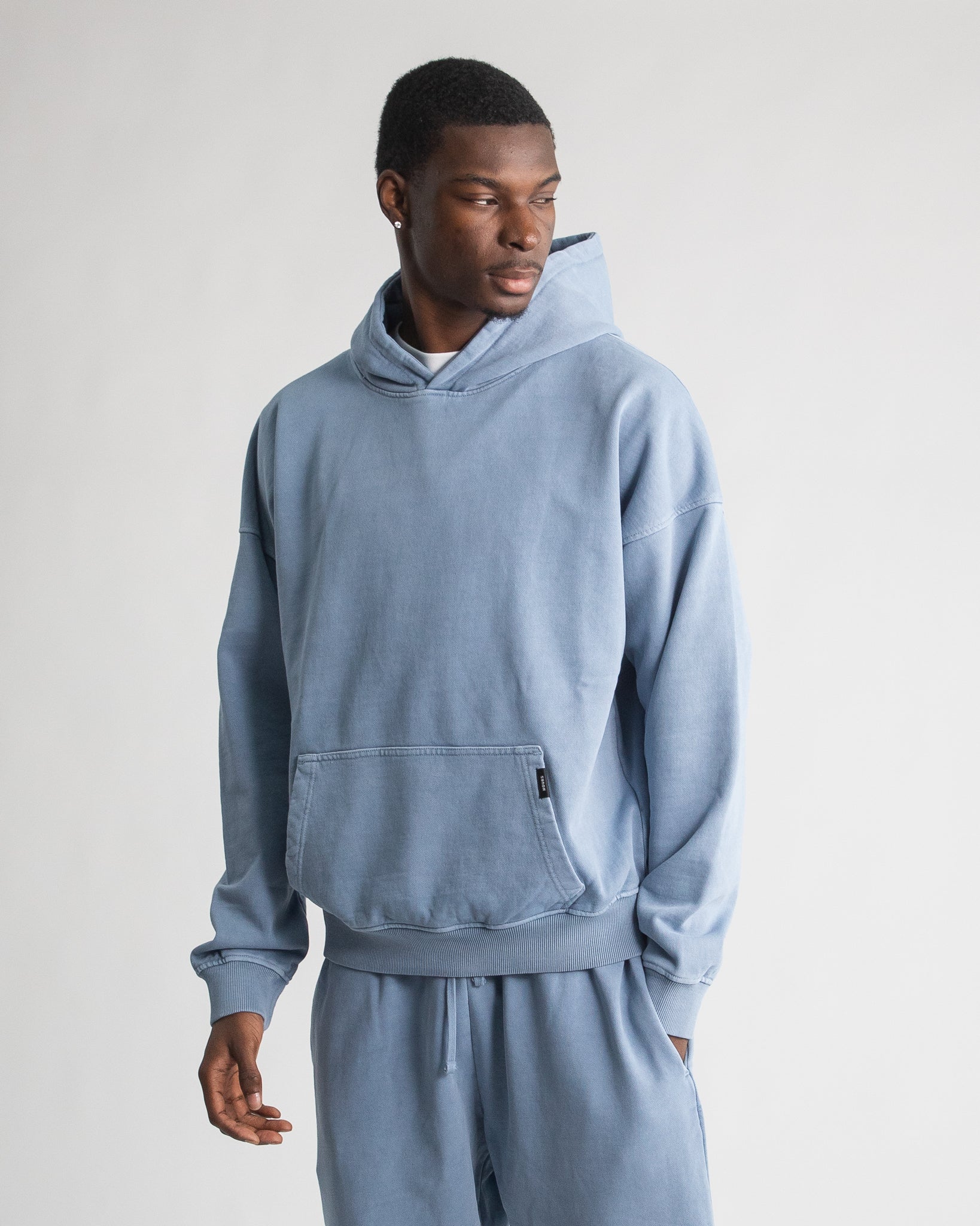 Drop Shoulder Hoodie - Vintage Blue