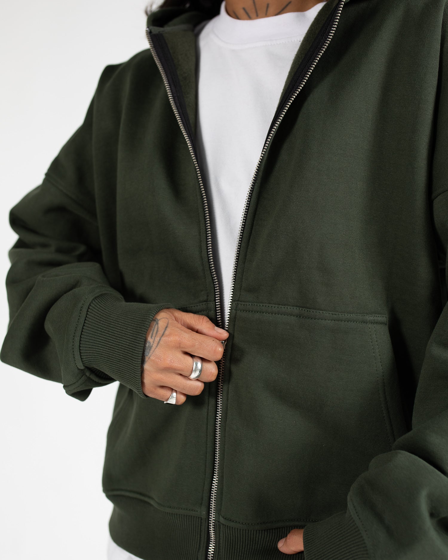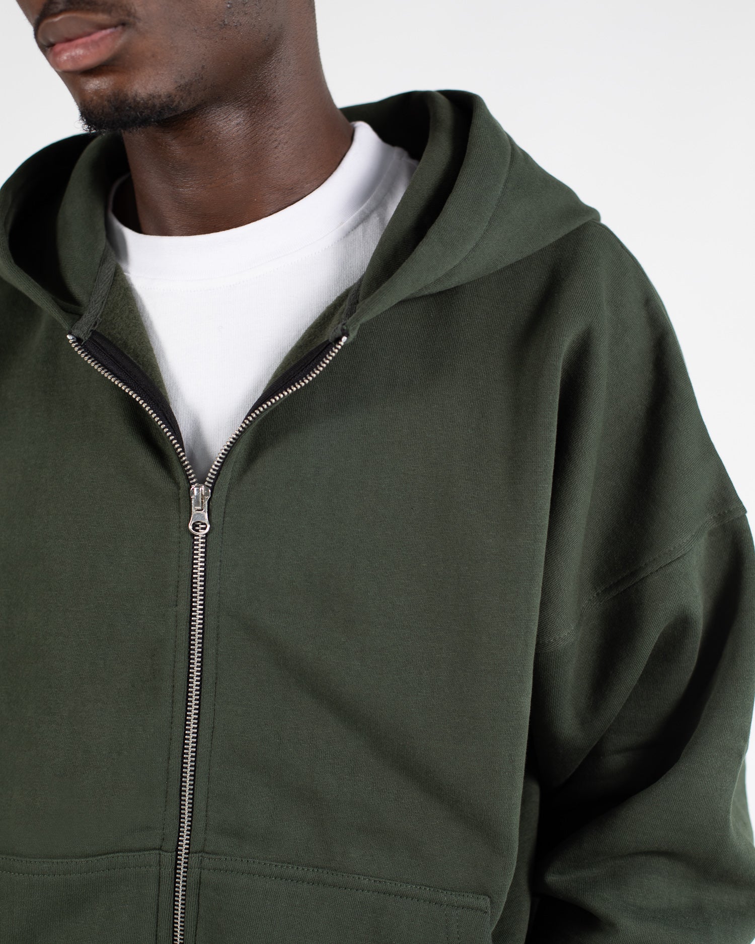 Drop Shoulder Zip Hoodie - Olive