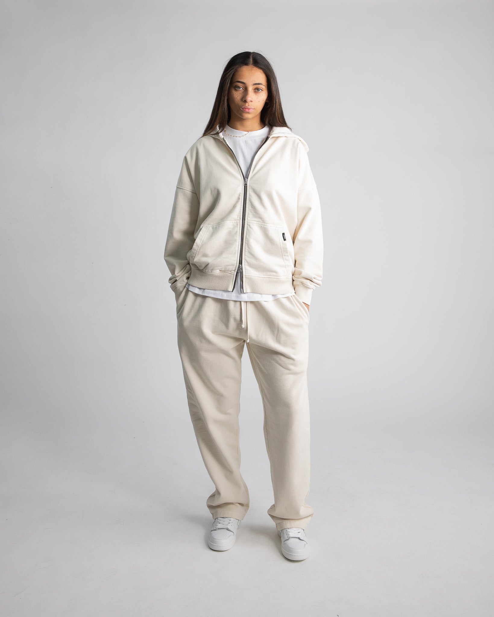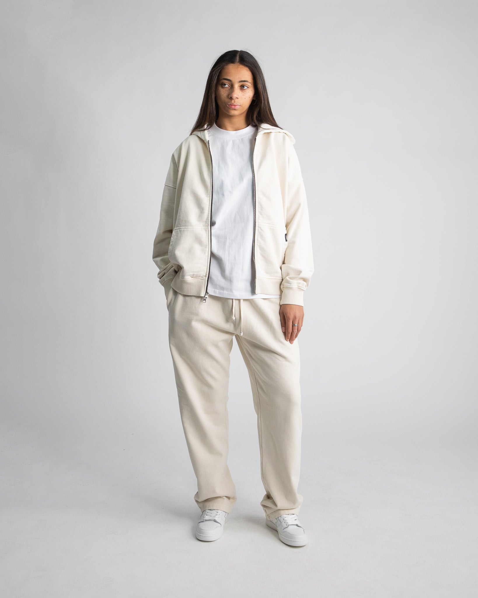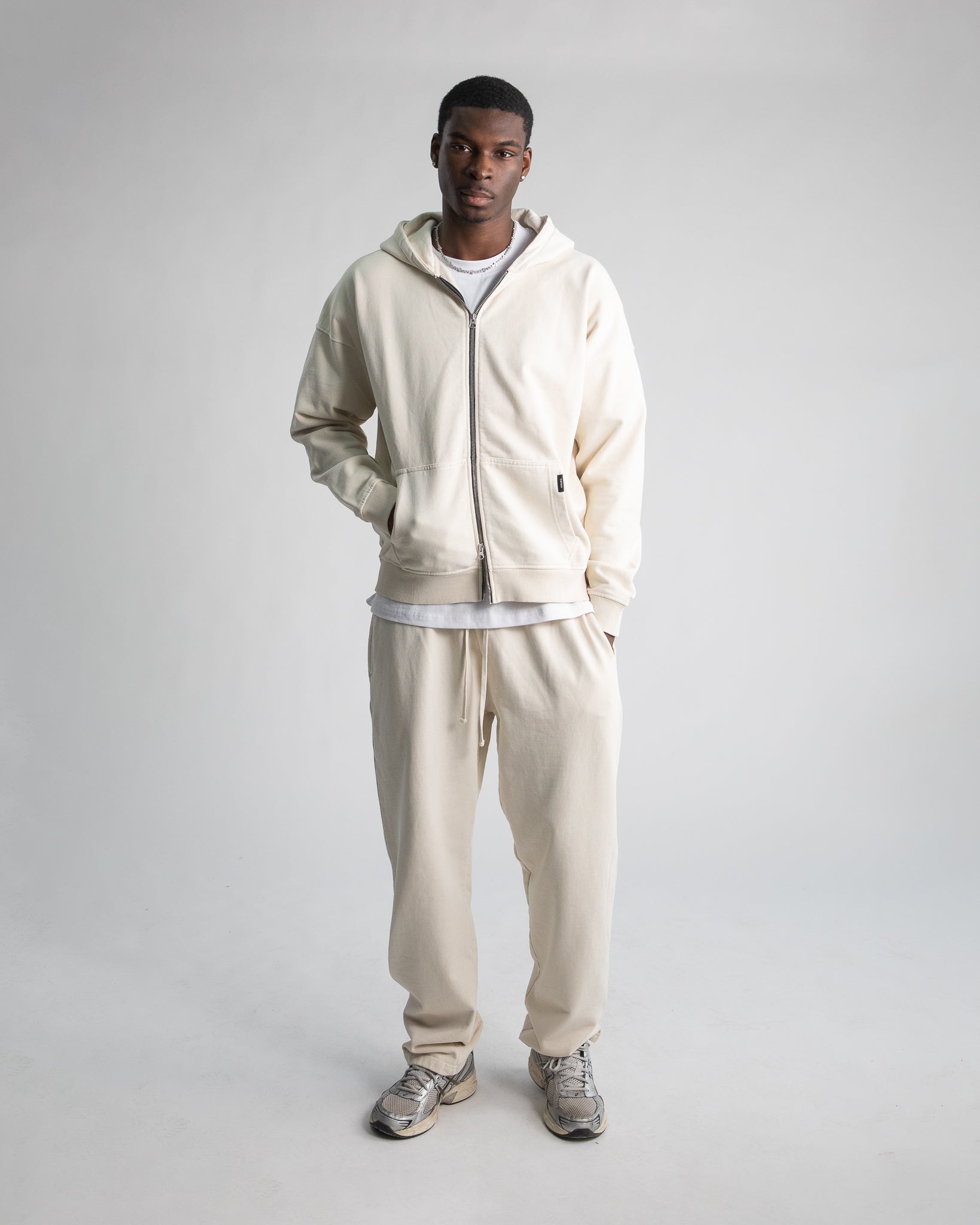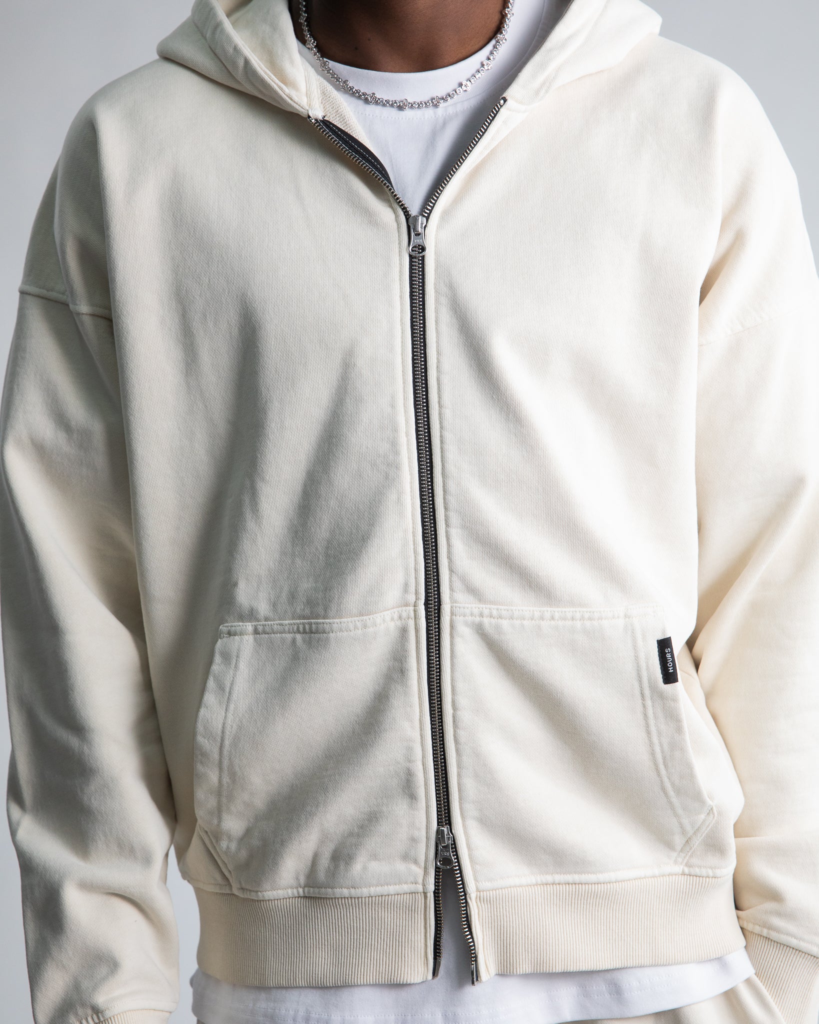 Drop Shoulder Zip Hoodie - Vintage Bone