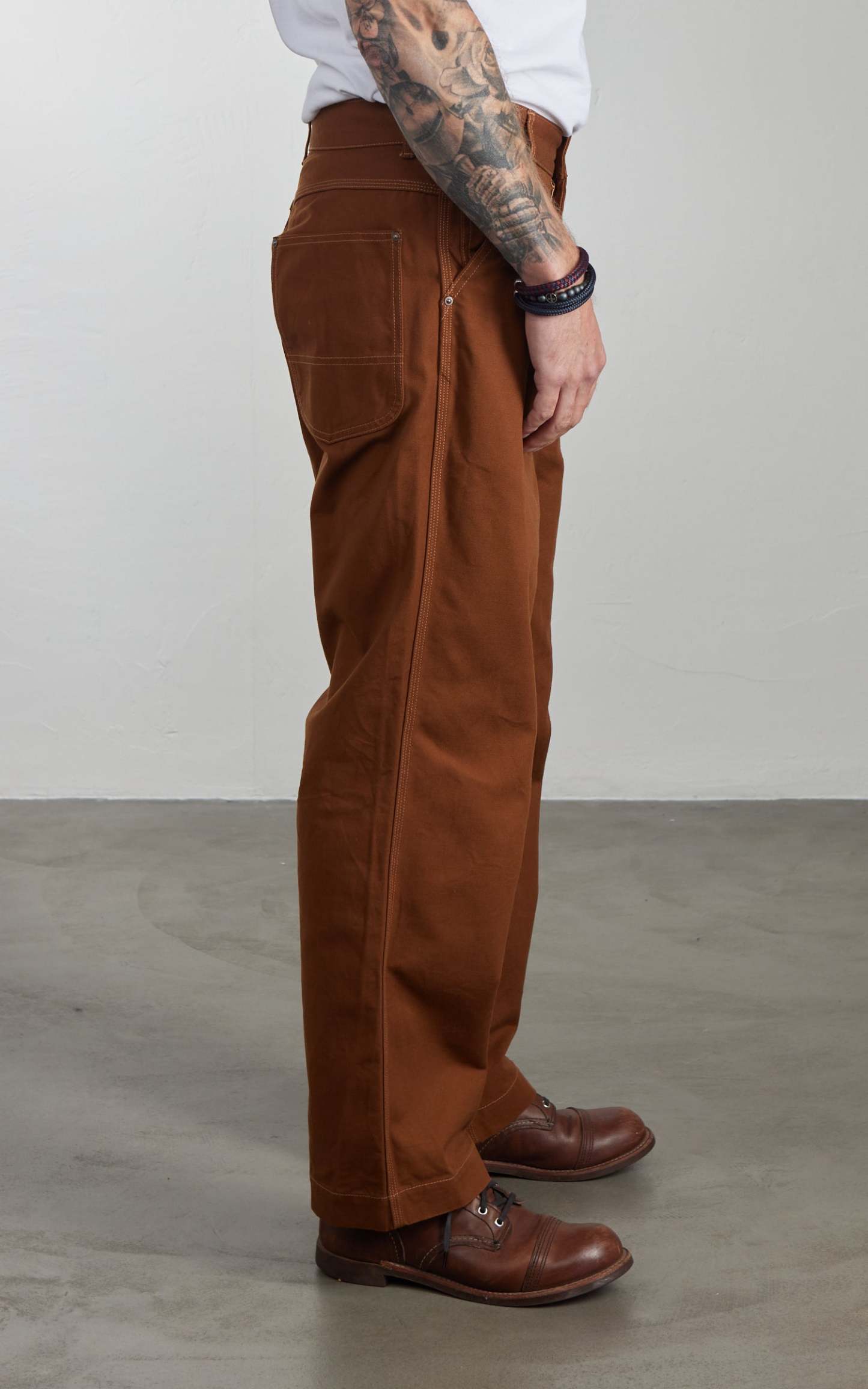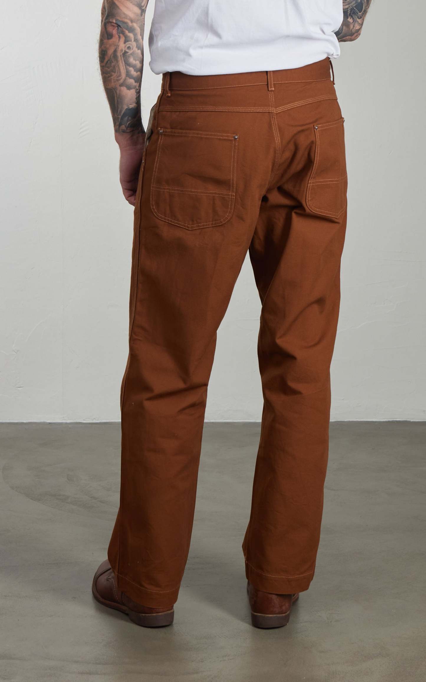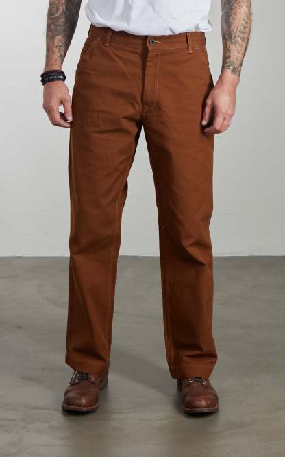 The work pants are made of originally produced 11oz cotton duck fabric.