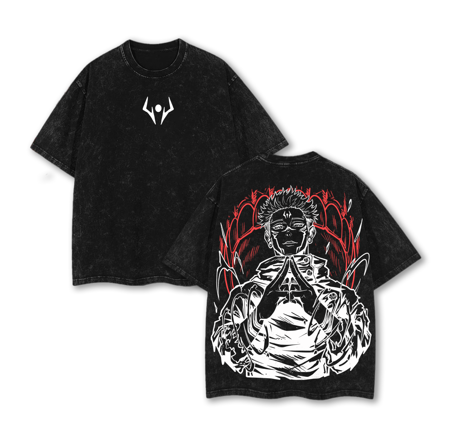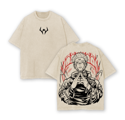 "Sukuna" Jujutsu Kaisen Vintage Unisex Oversize Anime Manga Acid Washed Cotton T-shirt