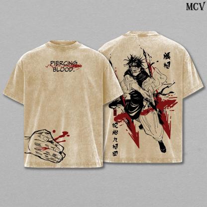 Choso Jujutsu Kaisen Tee Washed – Vintage Oversized Heavy Cotton Double Printed Anime Manga Graphic T-Shirt, Death Painting Womb Arc, Retro Unisex Streetwear Top Gift