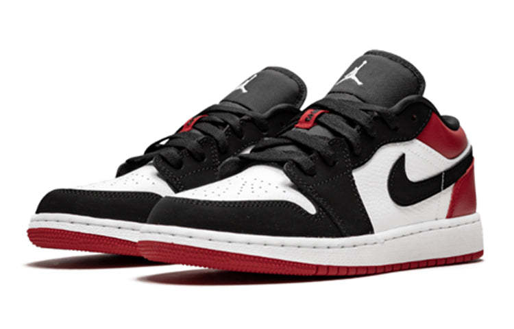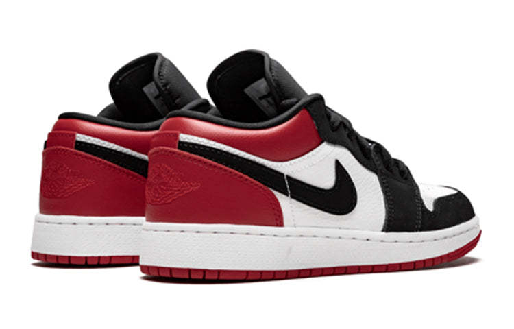 Step up your little one's style game with a classic sneaker that has stood the test of time. The Air Jordan 1 Low GS returns in an original colorway from 1985, Michael Jordan's rookie year. This Black Toe edition is updated for kids with a few modified details, while keeping most of the OG sneaker intact. Crafted with a White leather upper, the sneaker is accented with a Black Nubuck mudguard and Gym Red collar and heel counter. Your kiddo will love the embroidered Jumpman logo on the tongue and the tonal Wings logo on the heel.