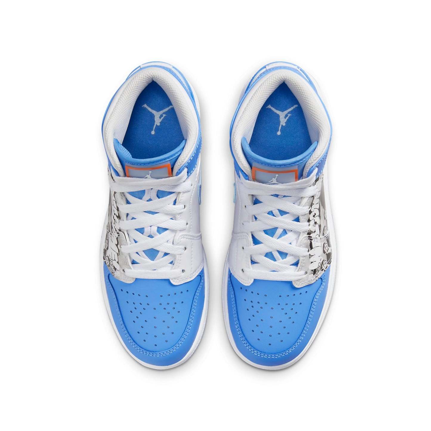 The Air Jordan 1 Mid 'Game Winner' is a stylish and iconic sneaker. Its unique side-printed photo inspired the design, featuring a striking combination of powder blue and white college colors. The iconic Jumpman logo is immortalized on the special woven tongue overlay, while the tongue itself features a basketball-inspired pattern. Perfect for any activity, this sneaker is sure to turn heads. It's part of the Air Jordan 1 series, which has been a staple of the sneaker world since its inception.