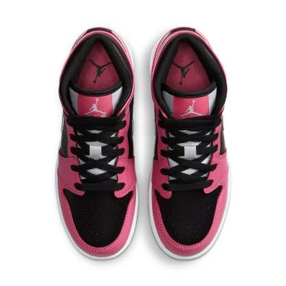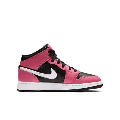 Nike Air Jordan 1 Mid GS Pinksicle This mid-top Air Jordan 1 comes dressed in a black, white and pinksicle color combination. Highlighted with black leather across the base while pink is applied to the overlays.