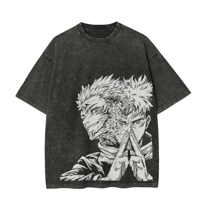 Jujutsu Kaisen Sukuna Printed Oversize Washed T-Shirt- Unisex