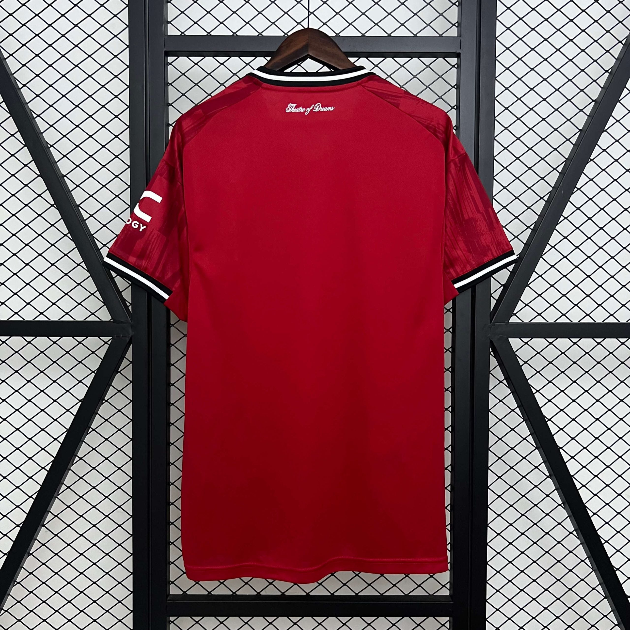 Stand proud with the iconic Manchester United 2025/26 Home Jersey, a modern evolution of the club’s legendary red kit. Designed by Adidas, this season's jersey features a rich scarlet tone with subtle tonal patterns and sharp black detailing — a nod to Old Trafford’s bold spirit and United’s unmatched legacy. Built with AEROREADY fabric, it ensures elite-level performance and all-day comfort for fans and players alike.