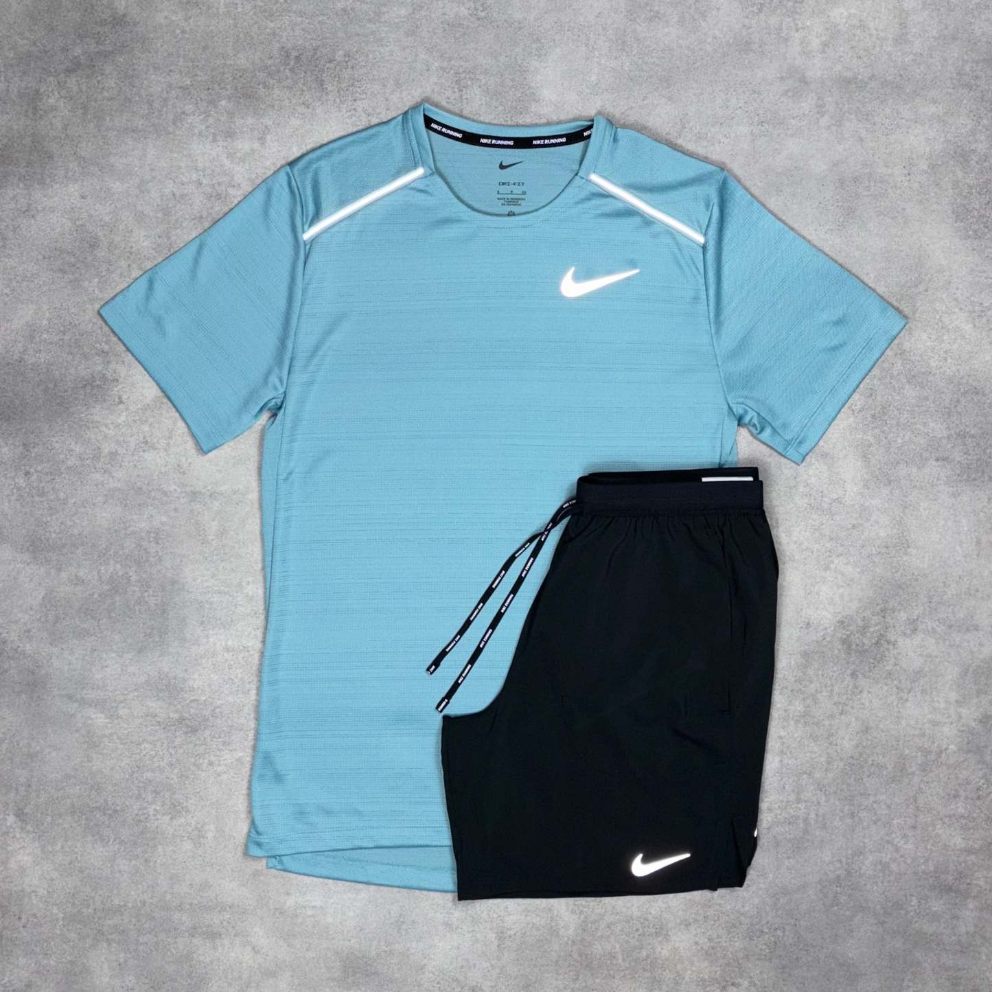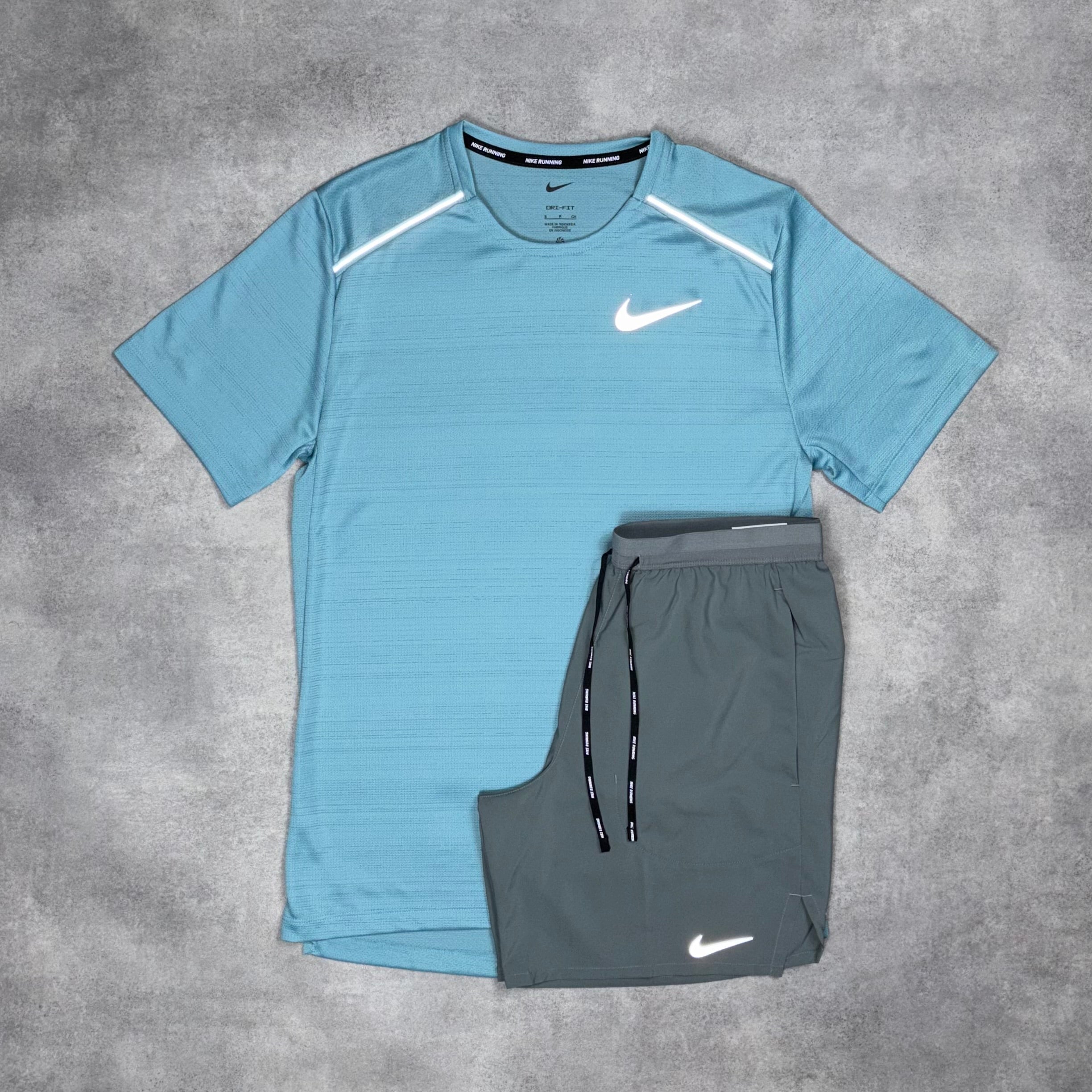 Miler T-Shirt Denim Turquoise& Black/Grey 7" Flex Stride Short Set