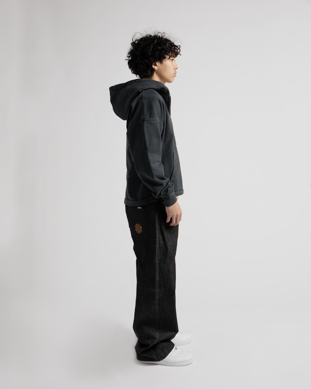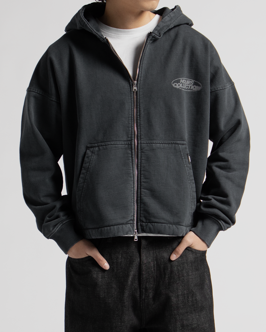 Mind Connection Cropped Zip Hoodie - Vintage Black