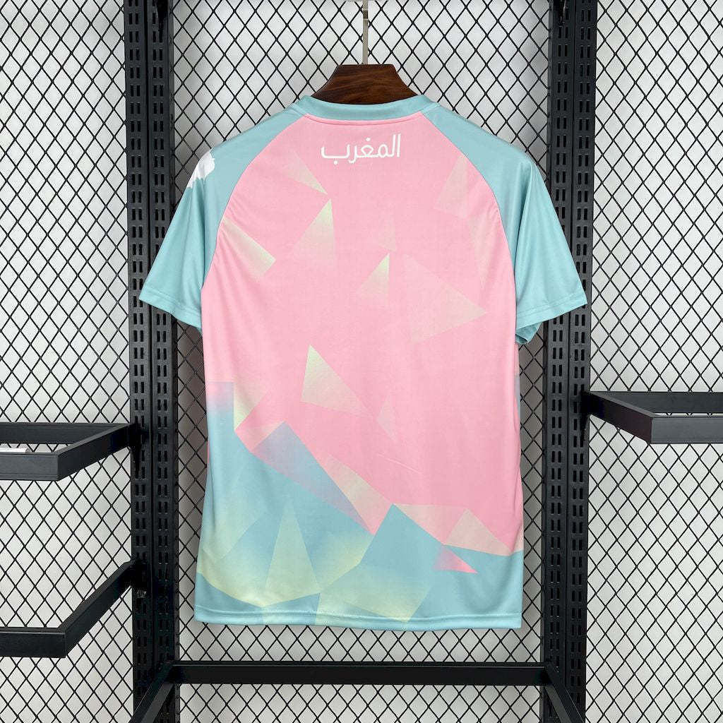 Embrace elegance and strength with the Morocco Pink Desert Kit, inspired by the colors and textures of the Sahara at sunset. The soft pink base with sand-gold accents symbolizes resilience, pride, and cultural beauty. Made from premium, breathable materials, it offers unmatched comfort and style for every Atlas Lions supporter.