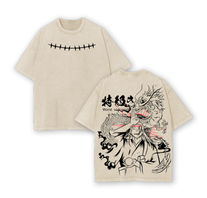 Geto Suguru Jujutsu Kaisen Washed T Shirt | Worst Sorcerer Dragon Curse Anime Graphic Tee