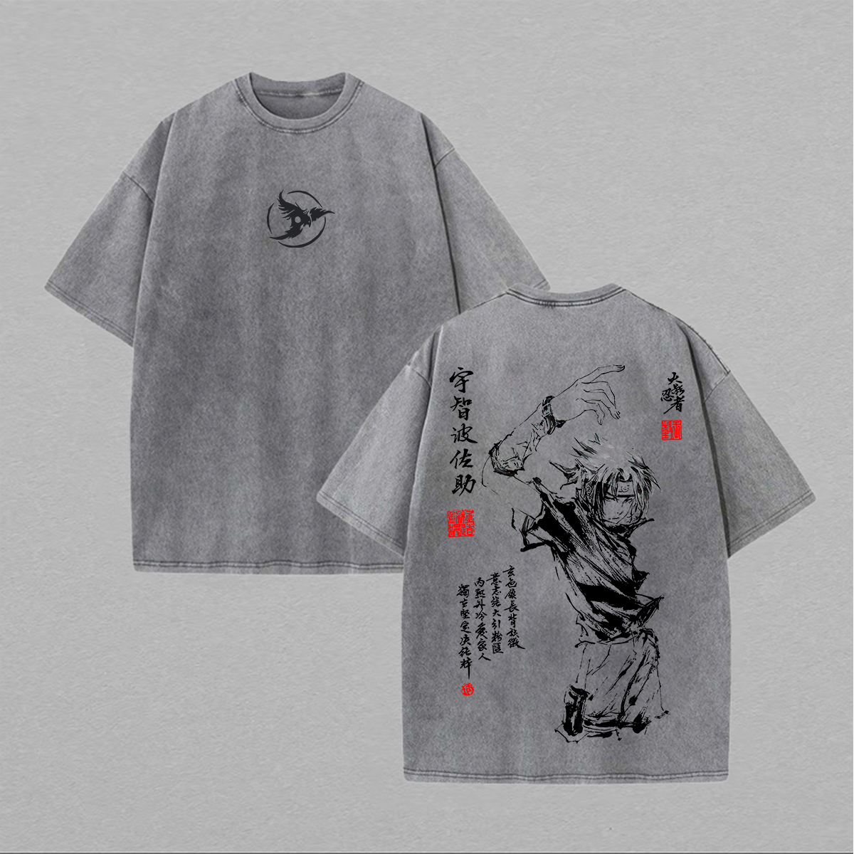 Naruto Uchiha Sasuke Printed Unisex Washed T-Shirt