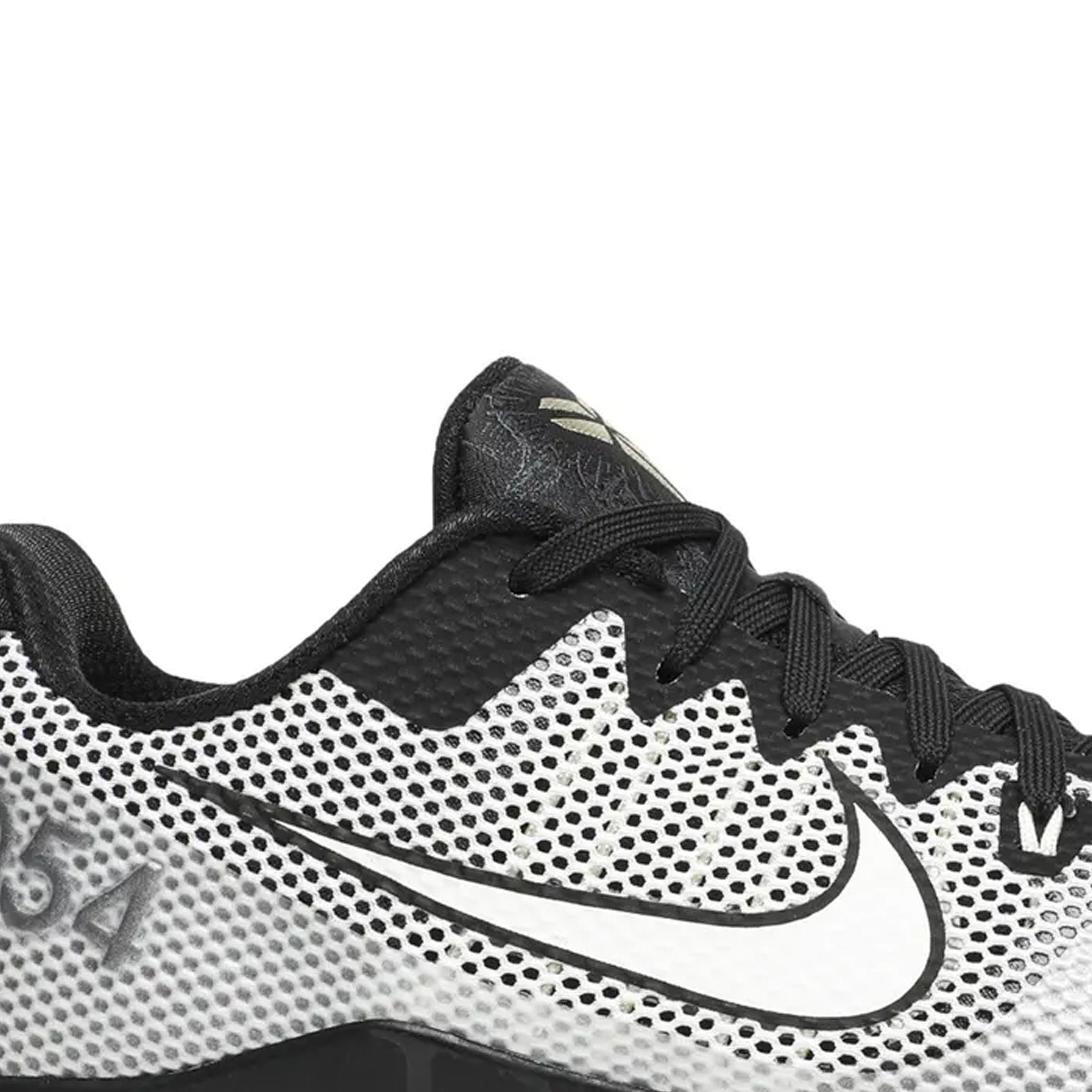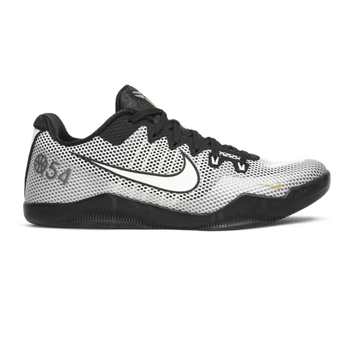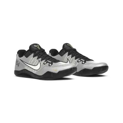 The Nike Kobe 11 'Quai 54' (2016) stands as a testament to Kobe Bryant’s enduring impact on basketball and sneaker culture, merging performance innovation with the cultural significance of Quai 54, the world-renowned Parisian streetball tournament. This special edition sneaker delivers a striking design that pays homage to both the Black Mamba’s legacy and the tournament’s deep-rooted influence in global street basketball.OverviewCrafted with a seamless Flyknit upper, the Nike Kobe 11 'Quai 54' boasts a bold black-and-white color scheme inspired by the tournament’s aesthetic. The signature Quai 54 logo is prominently displayed on the tongue, reinforcing its exclusive status. A translucent outsole enhances traction and performance, while the Lunarlon midsole and Zoom Air cushioning provide responsive comfort, making it an ideal blend of style and functionality. Subtle gold accents on the heel further elevate the design, symbolizing the prestige of the Quai 54 event and Bryant’s championship legacy.Key Highlights• Exclusive Quai 54 Collaboration – Designed in celebration of the annual Parisian streetball tournament, making it a sought-after collector's item.• Premium Flyknit Upper – Provides a lightweight yet durable fit, ensuring optimal performance on and off the court.• Lunarlon Midsole & Zoom Air Cushioning – Delivers exceptional comfort and responsiveness for high-impact play.