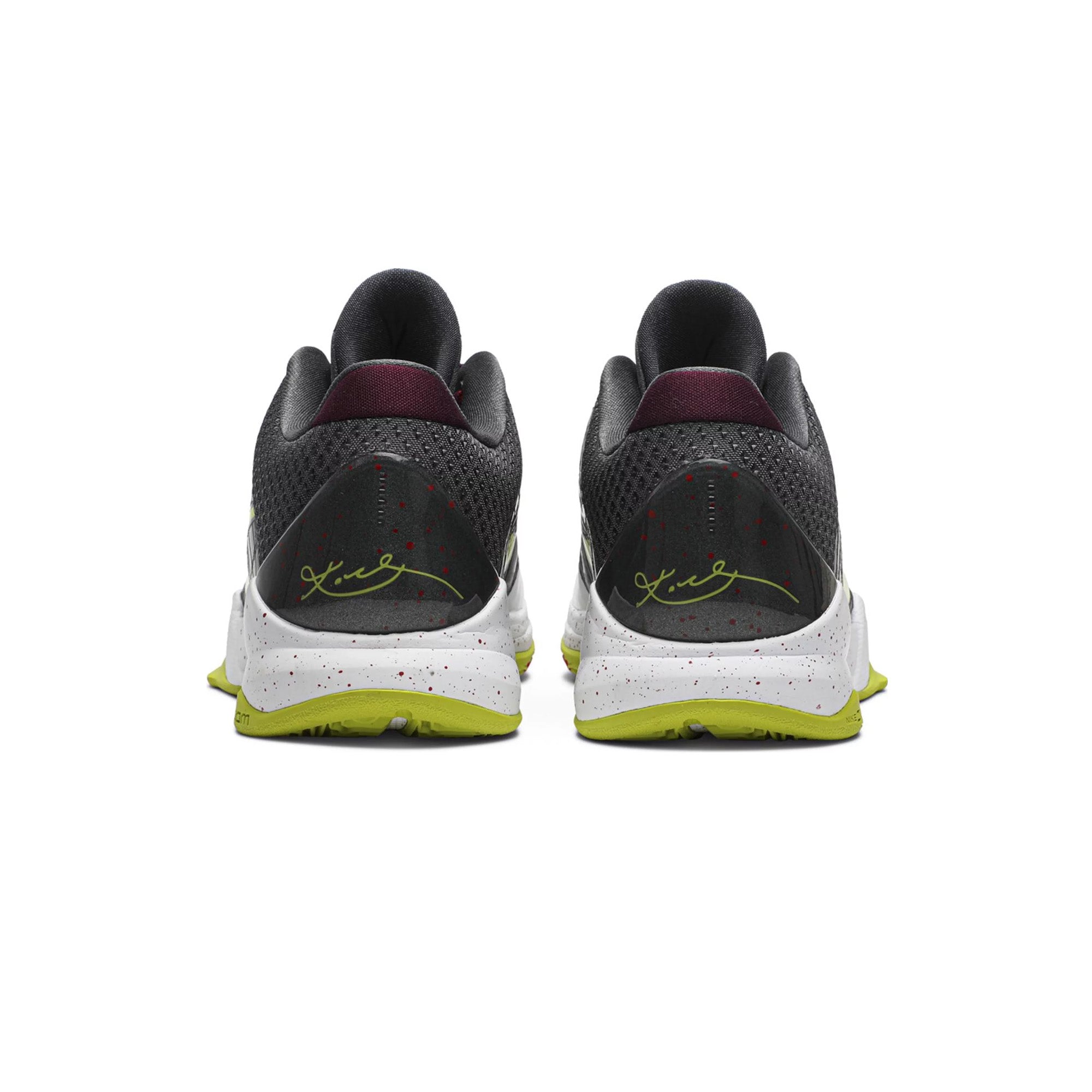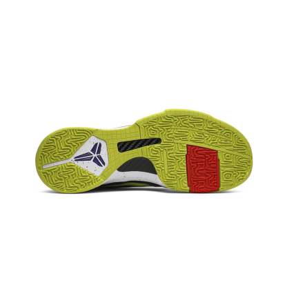 Crafted with a striking palette, the Kobe 5 Protro 'Chaos' features a sleek, low-top profile with a synthetic upper decked in a combination of white, black, and vibrant volt. The shoe’s base is predominantly white, contrasted with eye-catching purple and electric green accents, reminiscent of the chaotic yet captivating aura of the Joker character. A metallic silver Swoosh provides a reflective touch, while the speckled midsole and translucent outsole add a layer of modern sophistication. Enhanced with Nike's cutting-edge Zoom Air technology, this Protro edition ensures superior cushioning and responsiveness, making it a formidable choice for athletes seeking both style and performance.