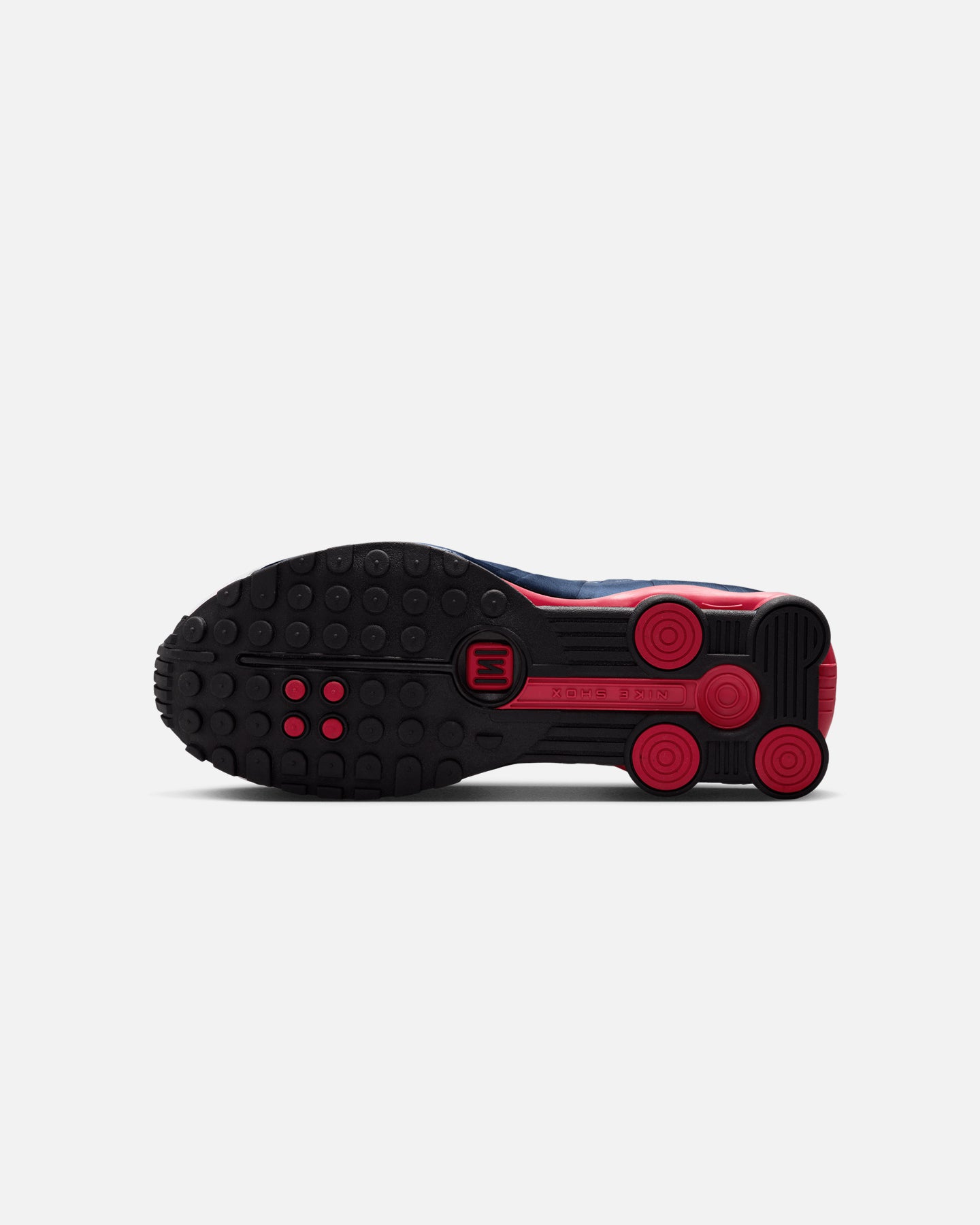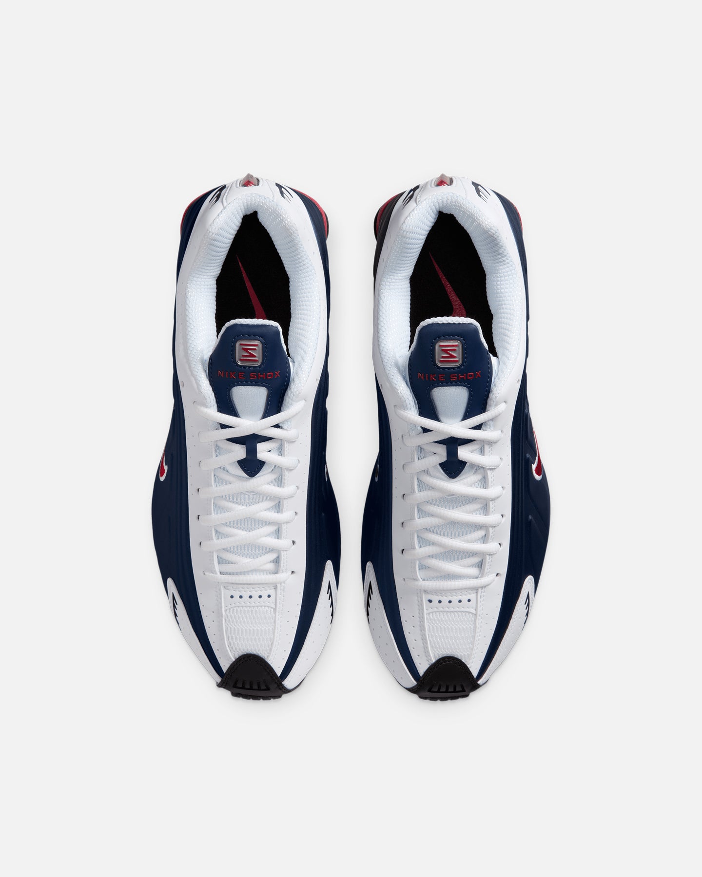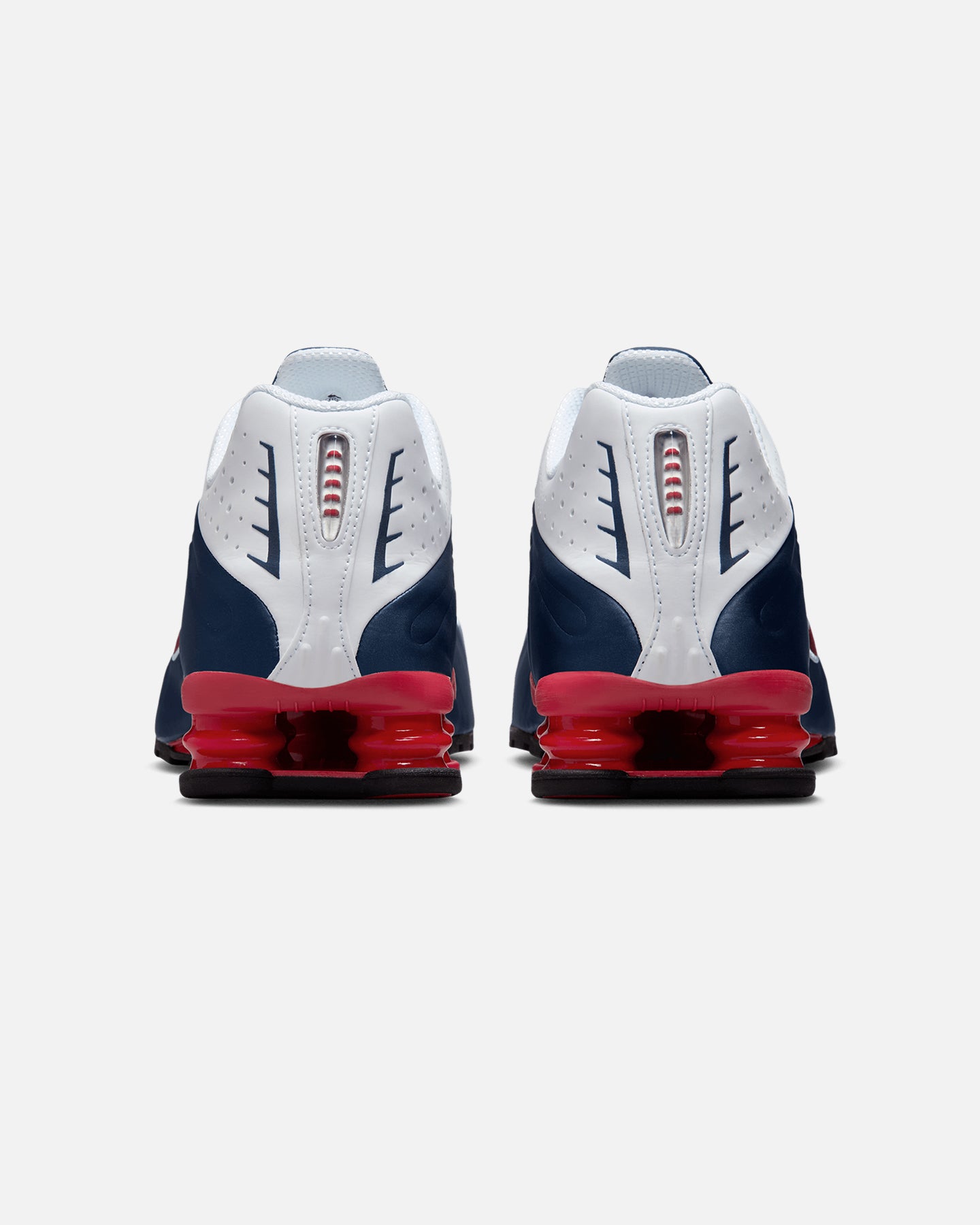 A recrafted version of the 2001 icon, the Nike Shox R4 replicates the original with its synthetic and textile upper, design lines and laser perforations. Nike Shox cushioning distributes weight to maximize comfort and provide a performance-inspired look. Cop yours today at Culture Kings.- Responsive cushioning- Circular waffle outsole- Synthetic uppers- Laser perforations- Upper is a near-exact replica of the original 2001 Nike Shox- Padded collar- Lace-up closure- Low-cut silhouette- Colour: Midnight Navy- Style: HQ1988-400