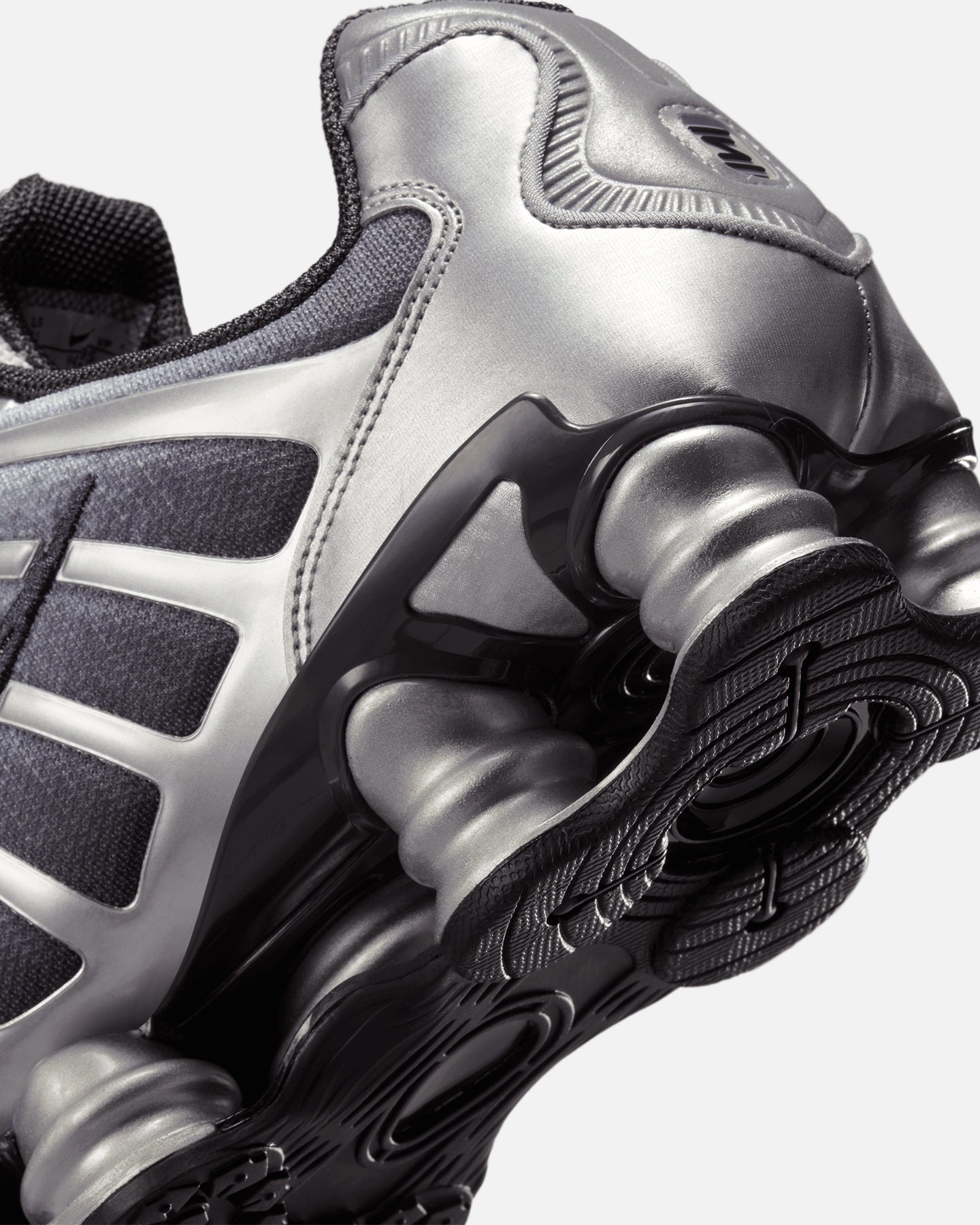 The Nike Shox TL takes mechanical cushioning to the next level. A recrafted version of the 2003 icon, it features breathable mesh and full-length Nike Shox technology for optimal impact absorption and a bold look. Cop yours today at Culture Kings.- Nike Shox technology- Combination upper with full TPU cage- Moderator plates for outstanding cushioning- Reflective details- Rubber outsole- Moulded overlays throughout midfoot- Design is a near-exact replica of the 2003 Nike Shox TL- Low-cut silhouette- Lace-up closure- Colour: Black/Metallic- Style: IH4466-095