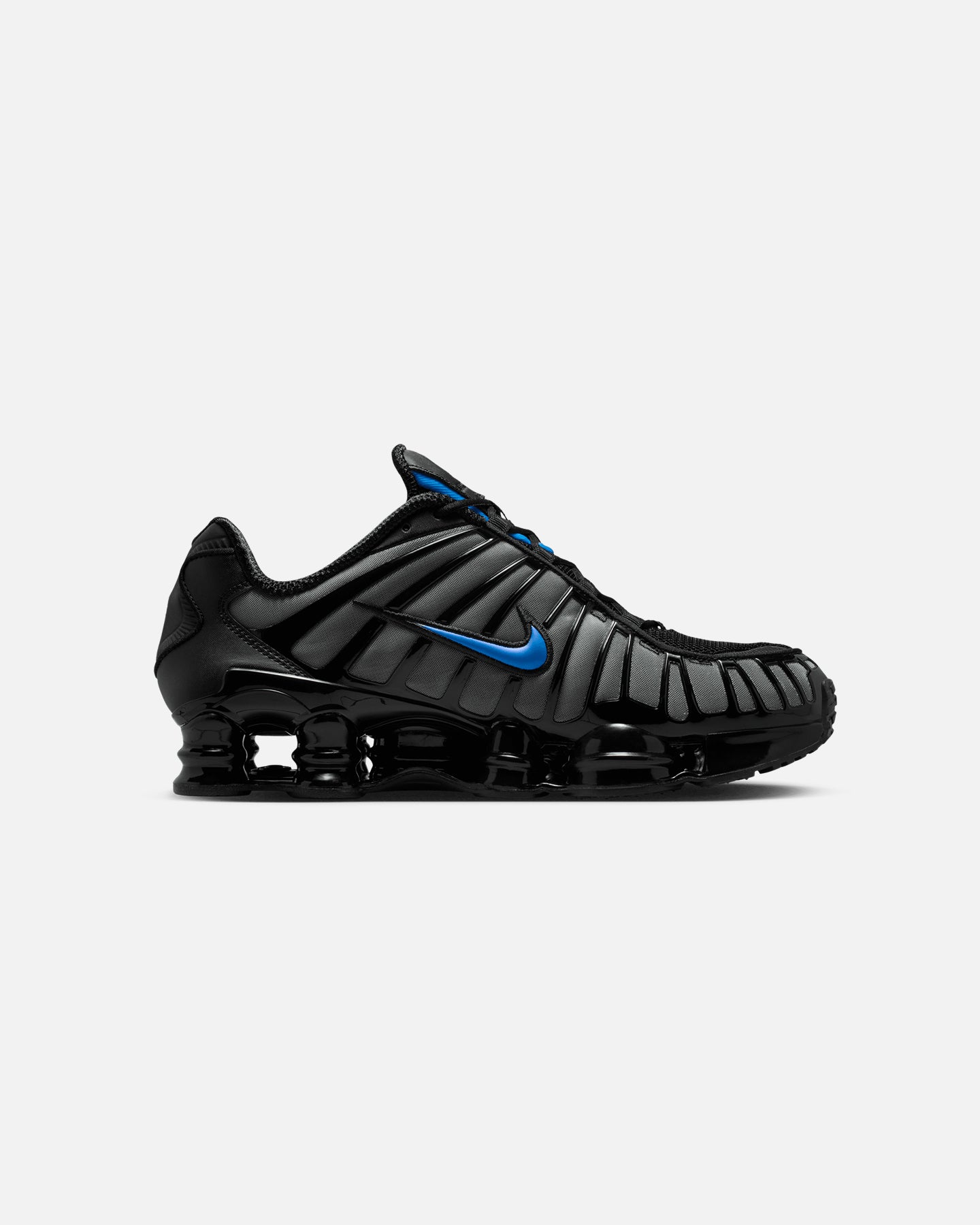 The Nike Shox TL takes mechanical cushioning to the next level. A recrafted version of the 2003 icon, it features breathable mesh in the upper and full-length Nike Shox technology for optimal impact absorption and a bold look on the streets. Cop yours today at Culture Kings.- Nike Shox technology- Breathable mesh upper- Synthetic and textile upper- Rubber outsole- Foam midsole- Lace-up closure- TPU plate in heel- Colour: Black/Blue- Style: IQ6599-001